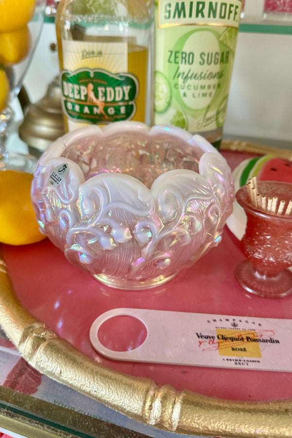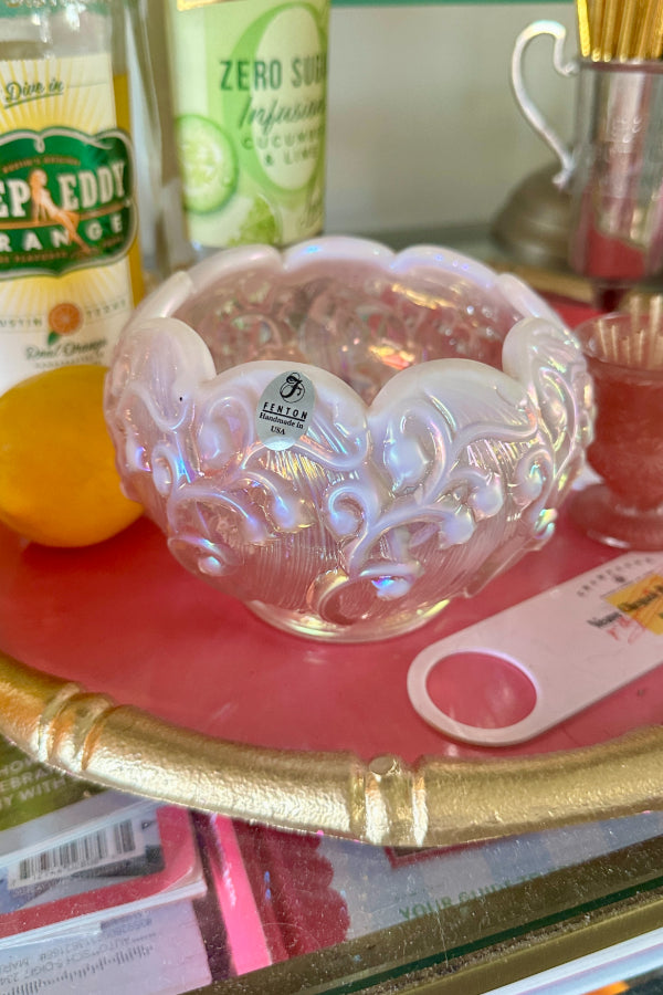 * Vintage Fenton Bowl, Pink Opalescent, Ring and Petal