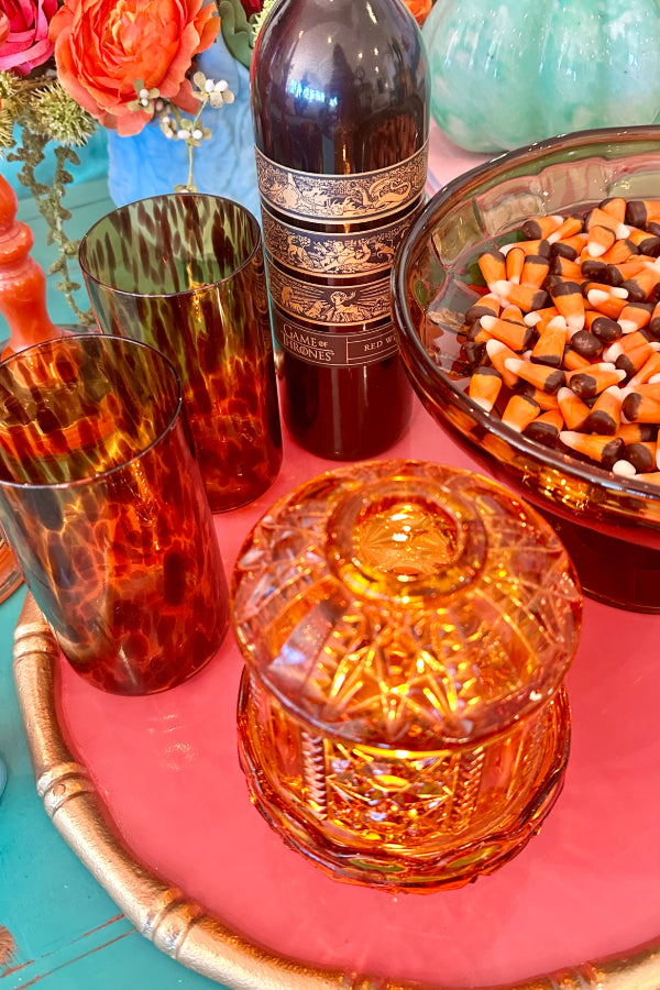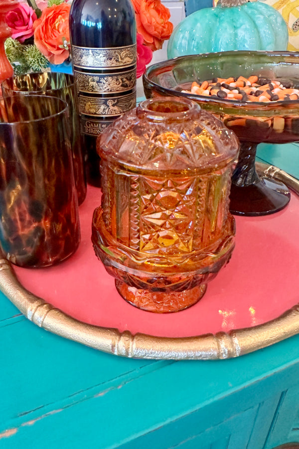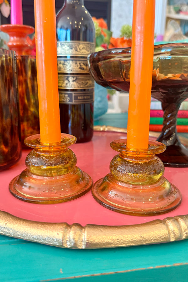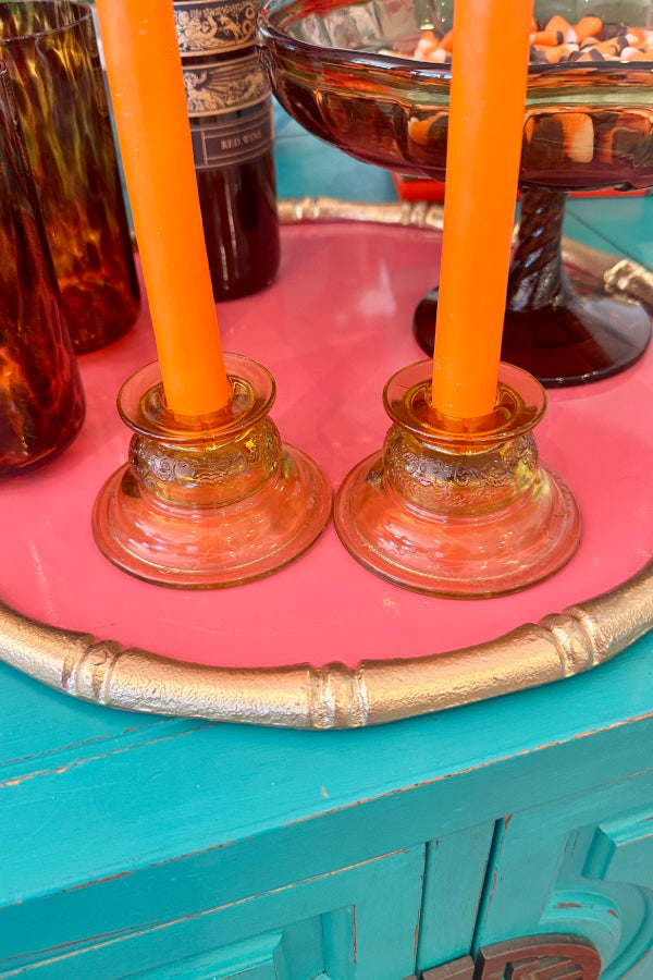 Vintage Fenton Madrid Amber Candlesticks, Pair