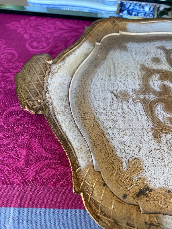 Vintage Florentine Vanity Tray - 2 Available, Orange and Green, EACH SOLD SEPARATELY