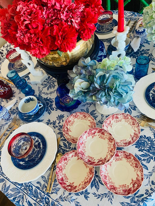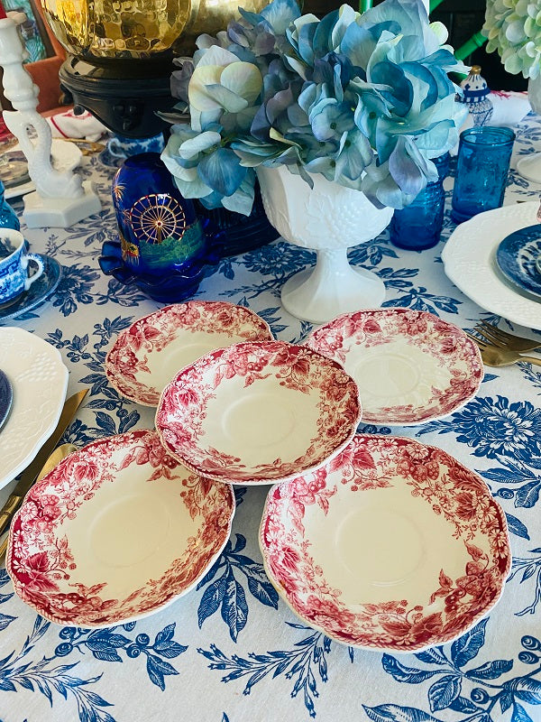 Vintage Ironstone Saucers, Strawberry Fair by Johnson Brothers - red and white