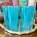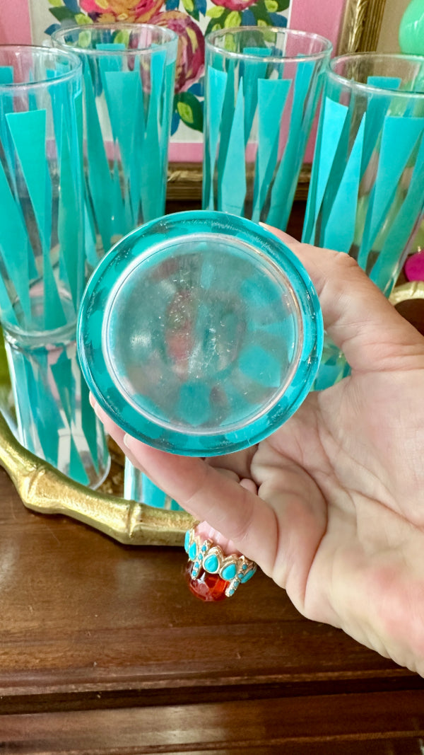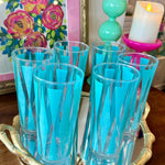 Vintage Hazel Atlas Drinking/Highball Glasses, 1960's Mid-Century, Turquoise, Diamond Pattern
