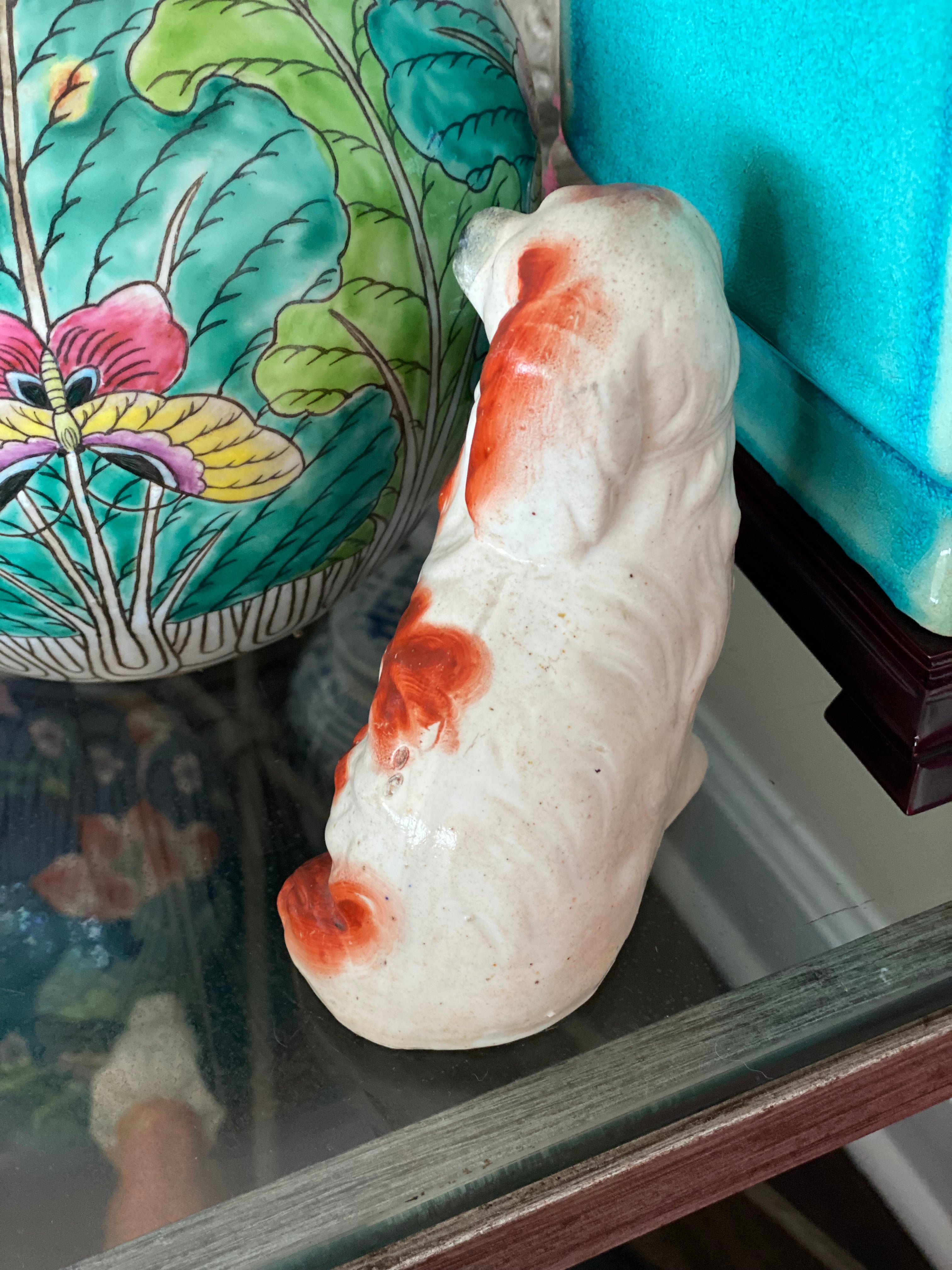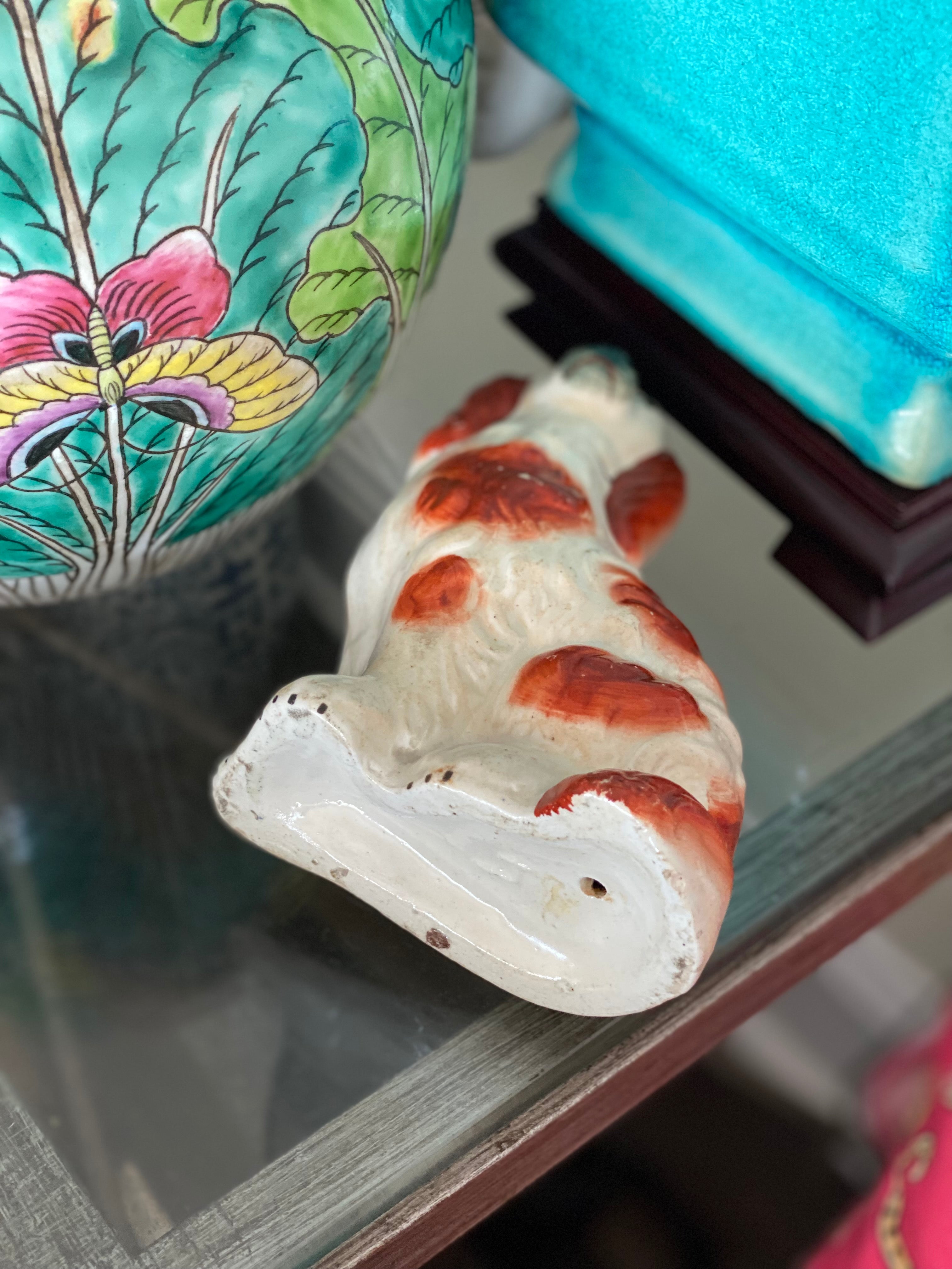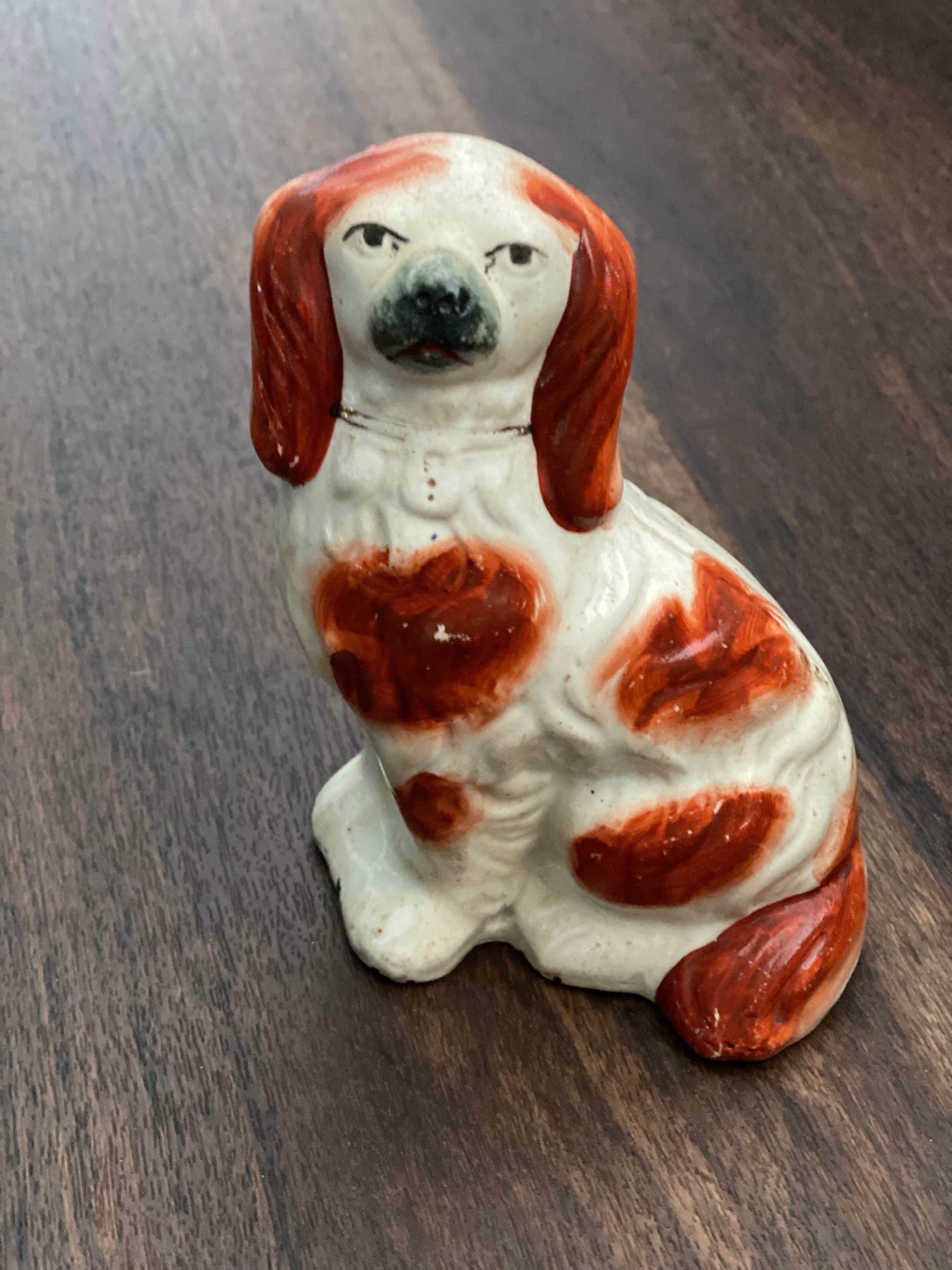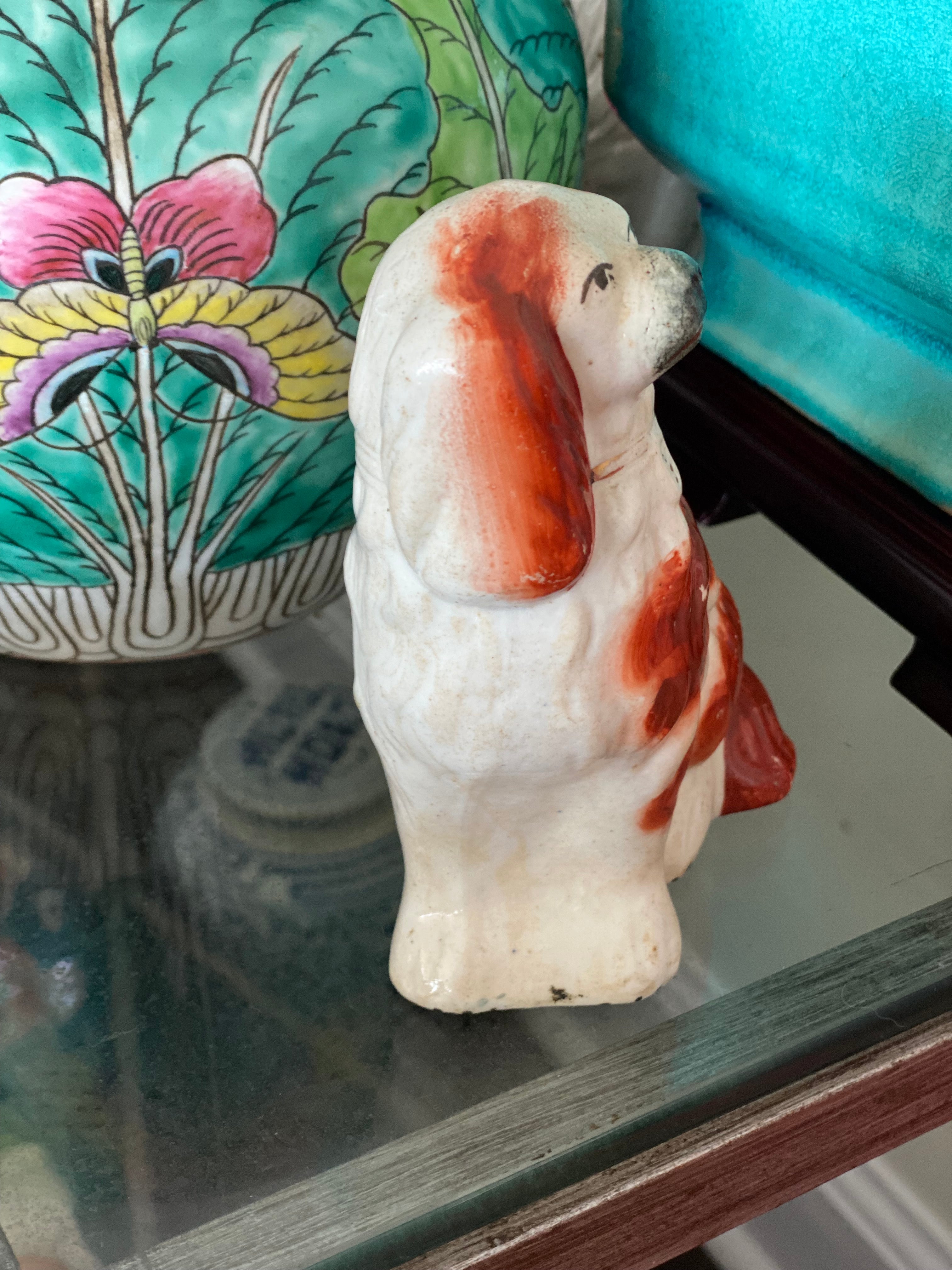 19th Century Staffordshire Dog Figurine, Rust and Cream coloring