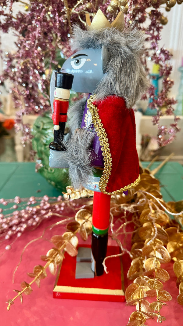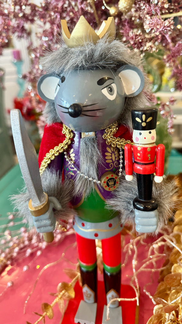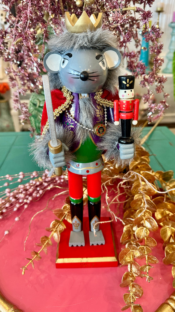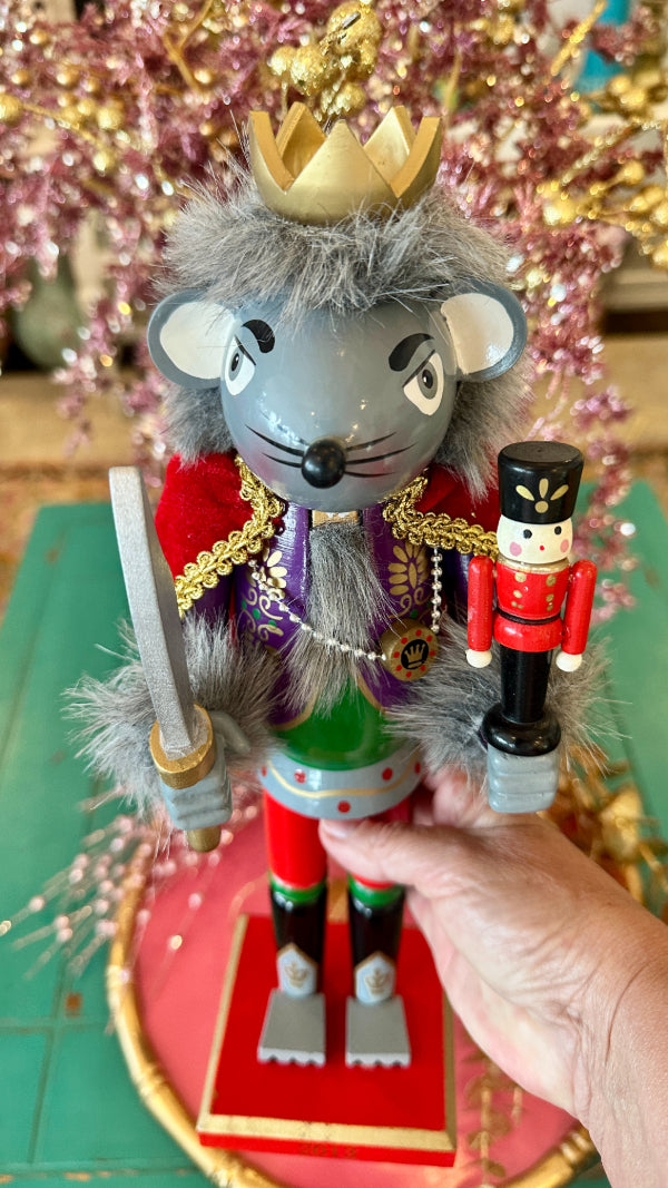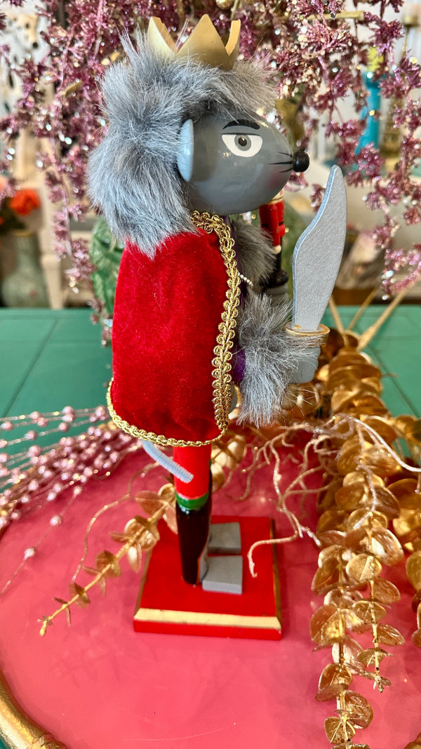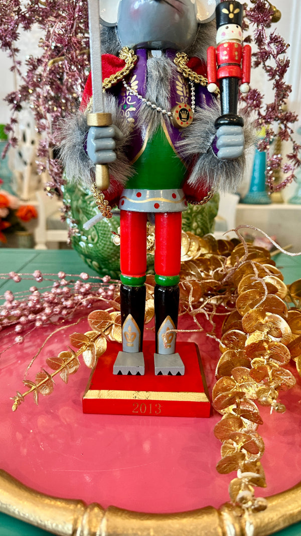 Bring a touch of storybook magic to your holiday décor with this 2013 Rat King Mouse Nutcracker. Inspired by the beloved Nutcracker ballet, this whimsical figure features regal detailing, a jeweled crown, and a commanding stance that captures the spirit of the classic tale. A perfect choice for collectors or anyone looking to add theatrical charm to their Christmas display.