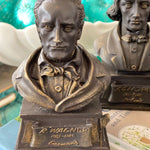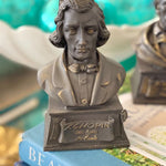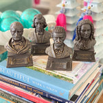 Each bust sold separately. Please specify which composer you wish to purchase. These are small busts of famous musical composers. Made of resin, brown with touches of gold to highlight the shape and form. All in great vintage condition. See picture details as they are part of the description.