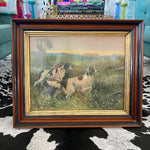 Vintage / Antique Artwork - Framed Pair Black and White Spaniels Hunting, Original Frame and Glass