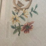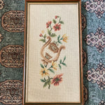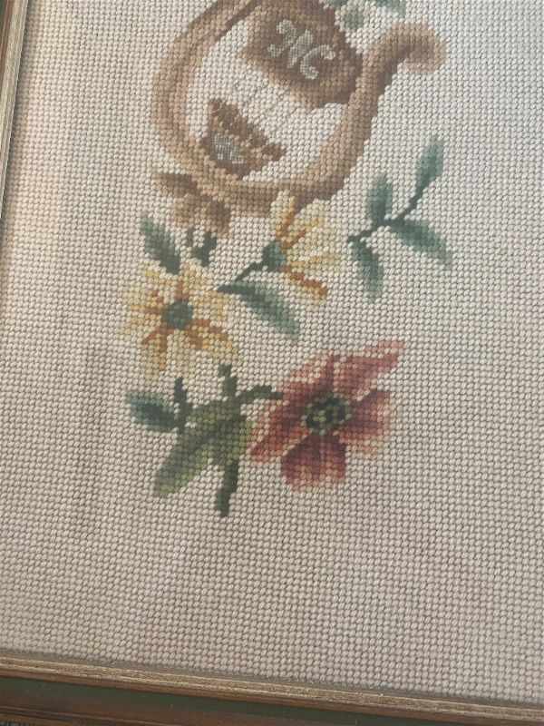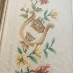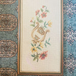 Grandmillennial Vintage Needlepoint Floral and Harp / Lyre Wood Framed in glass