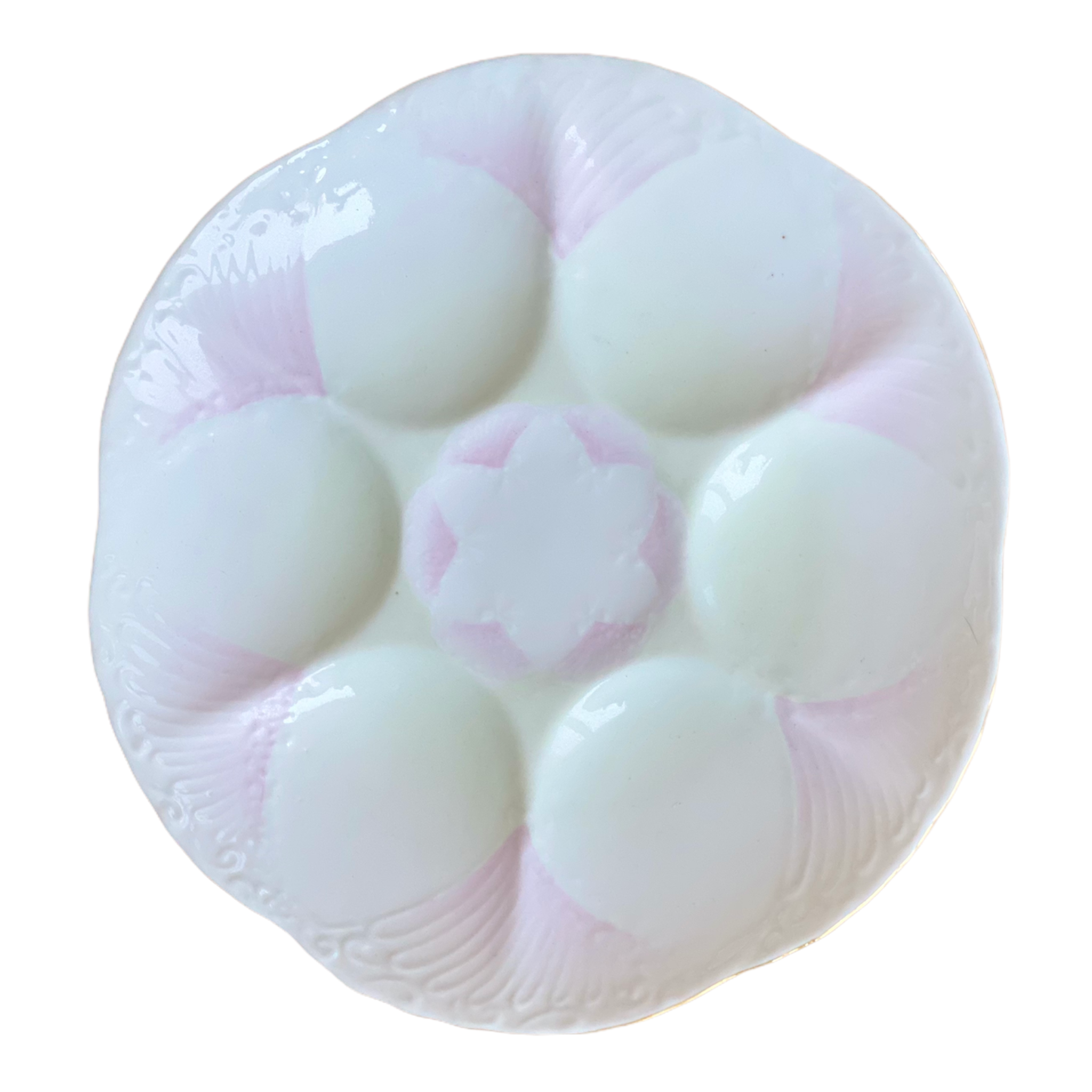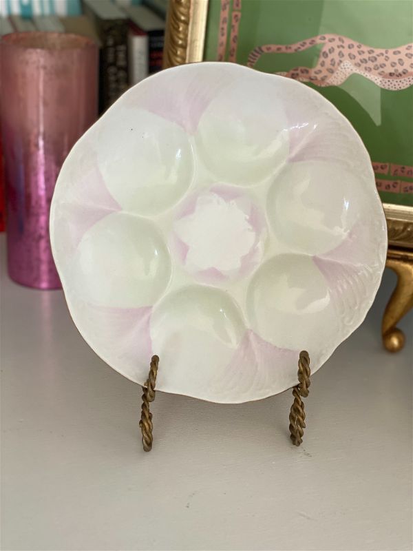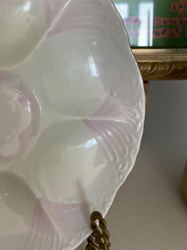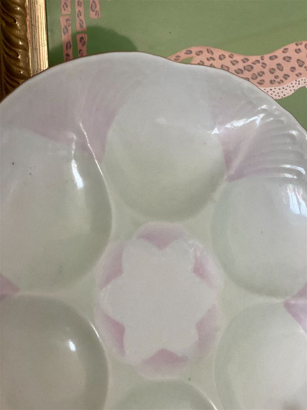 Pink and white beautiful and rare Limoges oyster plates. 2 available. Each sold separately. Amazing vintage condition. Very light pink and white with some textured detail. Great for display on a plate wall, china cabinet, or shelf. Stamp ark on bottom. See picture details as they are part of the description.