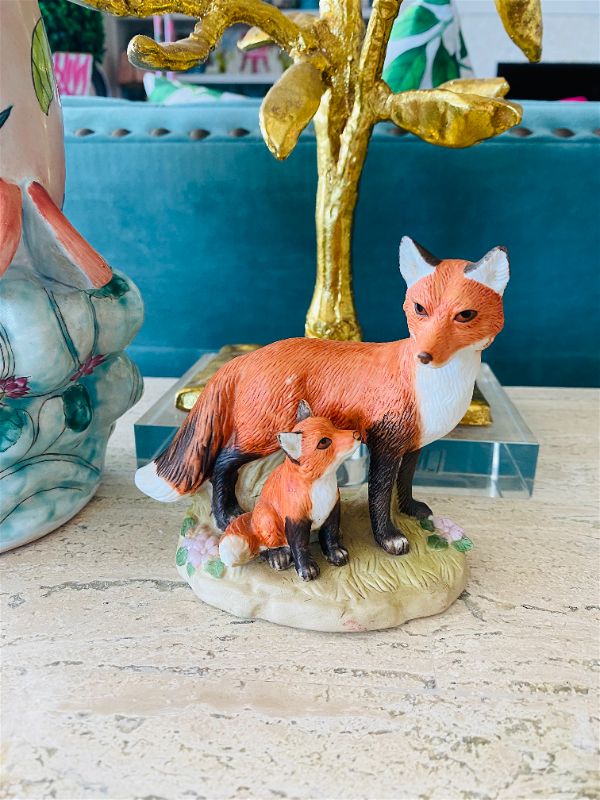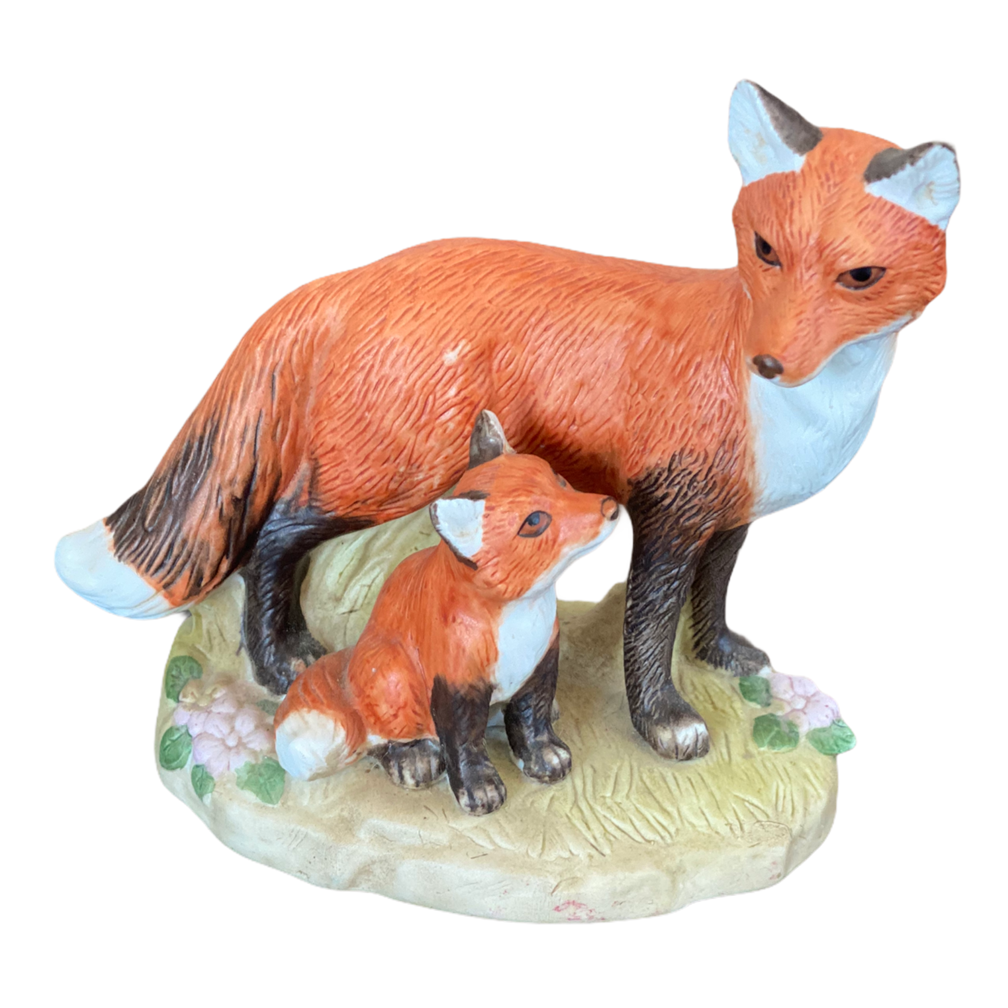 Vintage Homco Mother and baby fox figurine, Malaysa