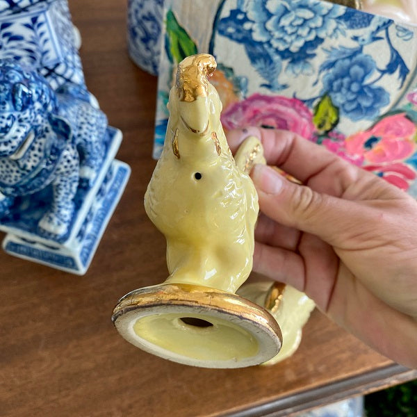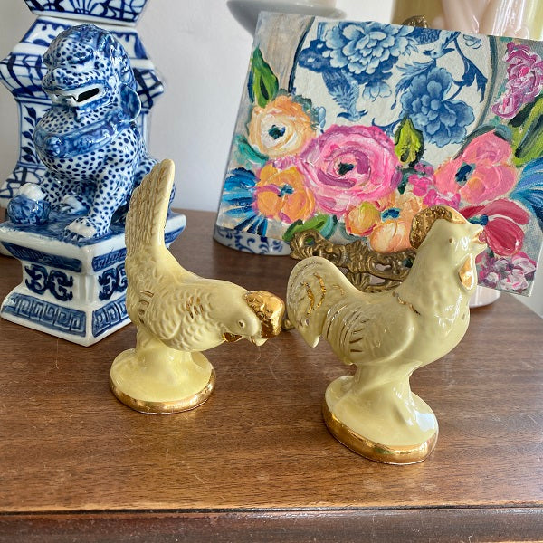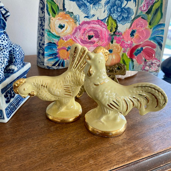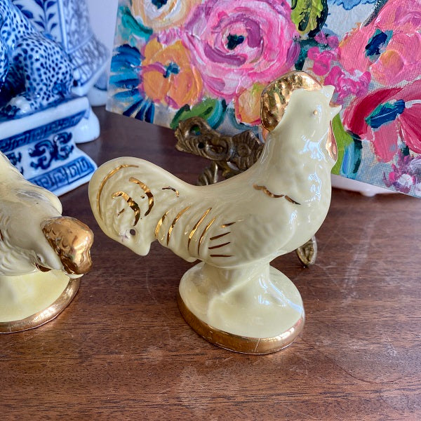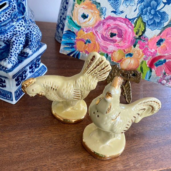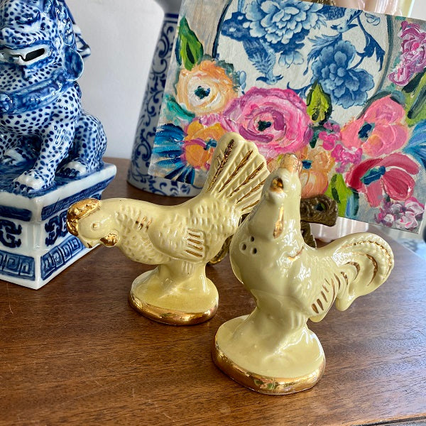 Vintage Rooster Salt and Pepper Shakers, Yellow and Gold Porcelain