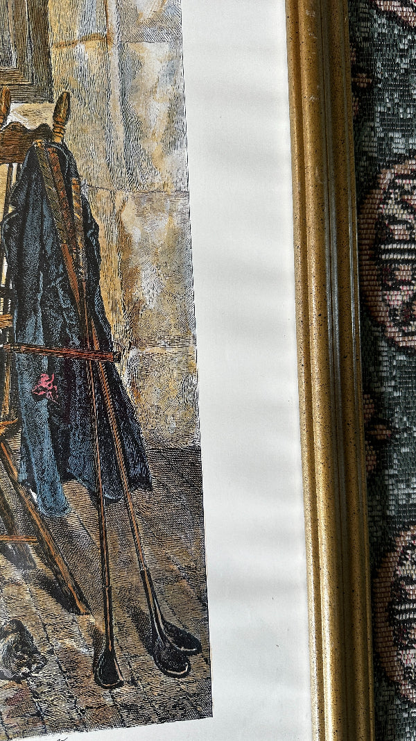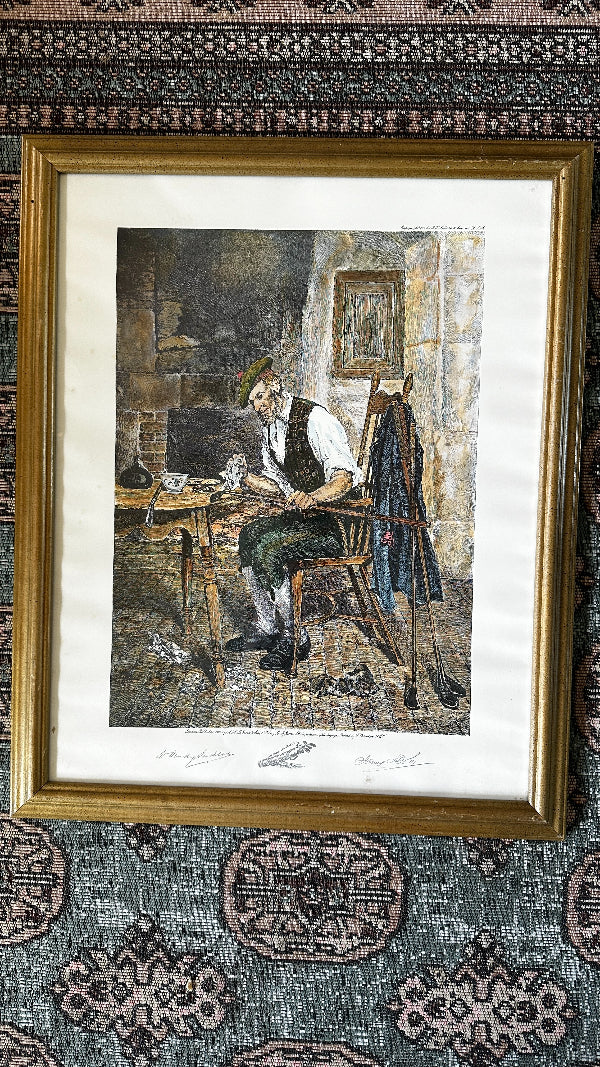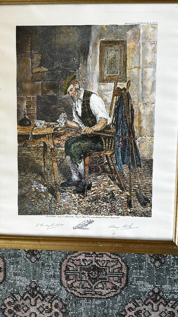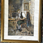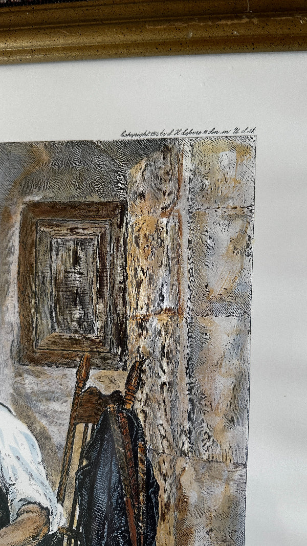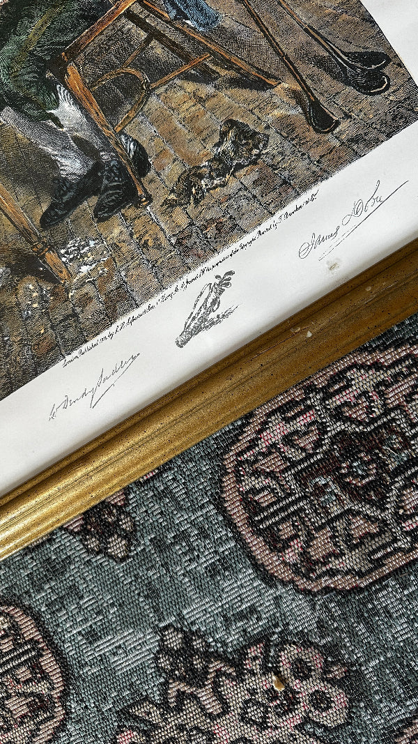 Antique 1916 Art Print "A Winter EVening" Vintage Golf By H.W. Dendy Sadler, Signed and framed