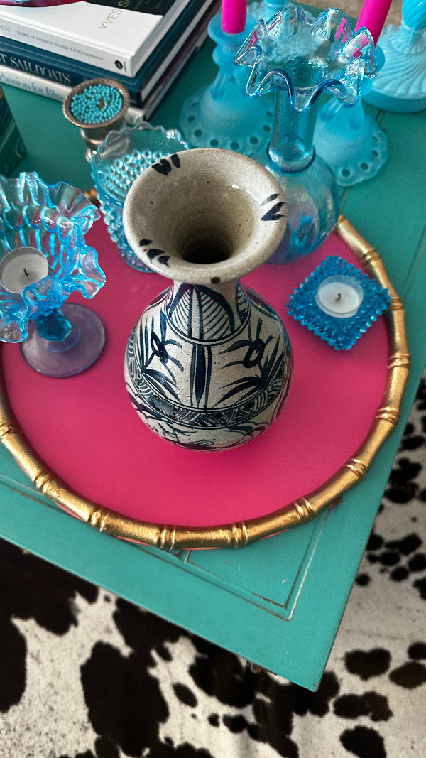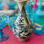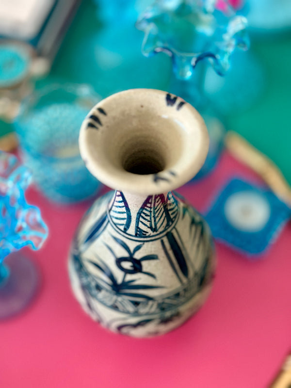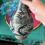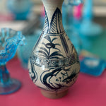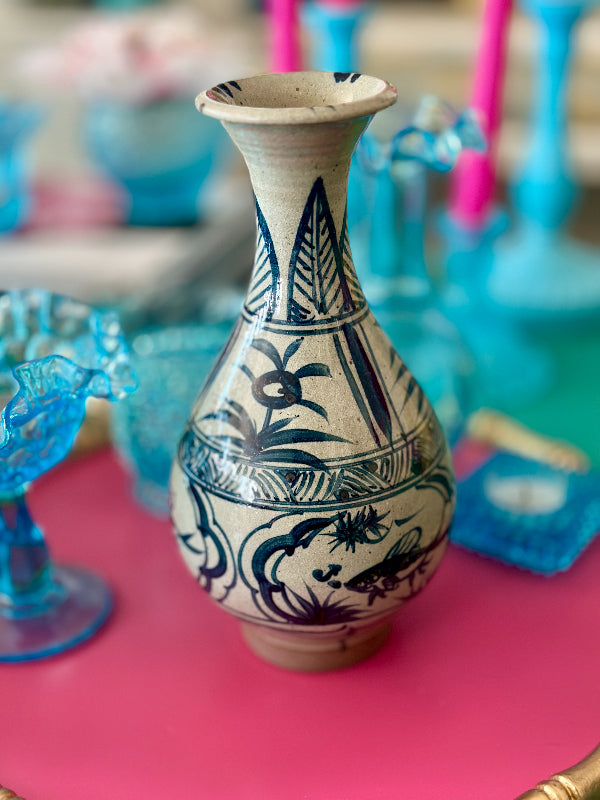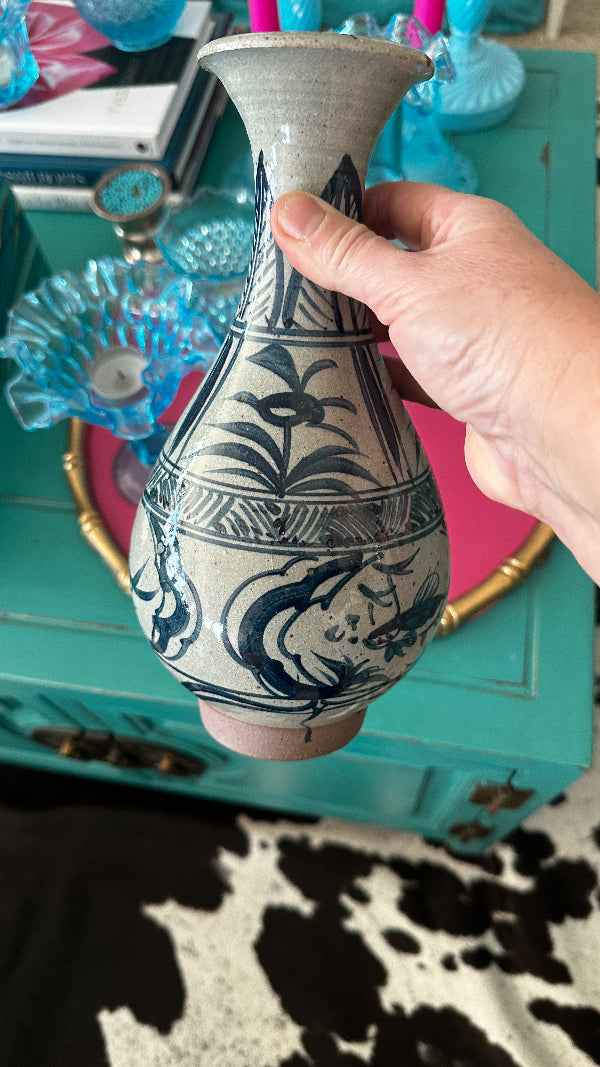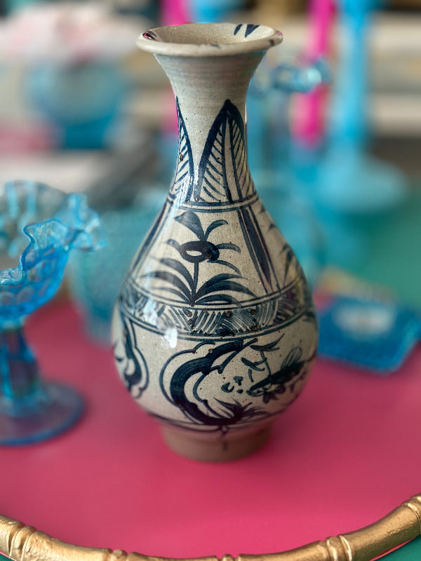 Beautiful Antique Bottle Vase in captivating Blue and White/Gray Chinoiserie design. This exquisite piece seamlessly combines traditional artistry with a touch of vintage charm. With the intricate patterns and delicate craftsmanship, this antique vase makes a unique addition to any space.