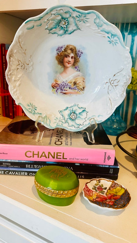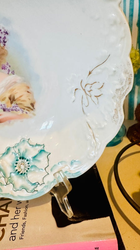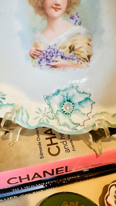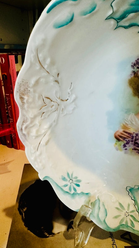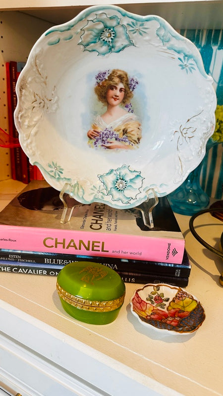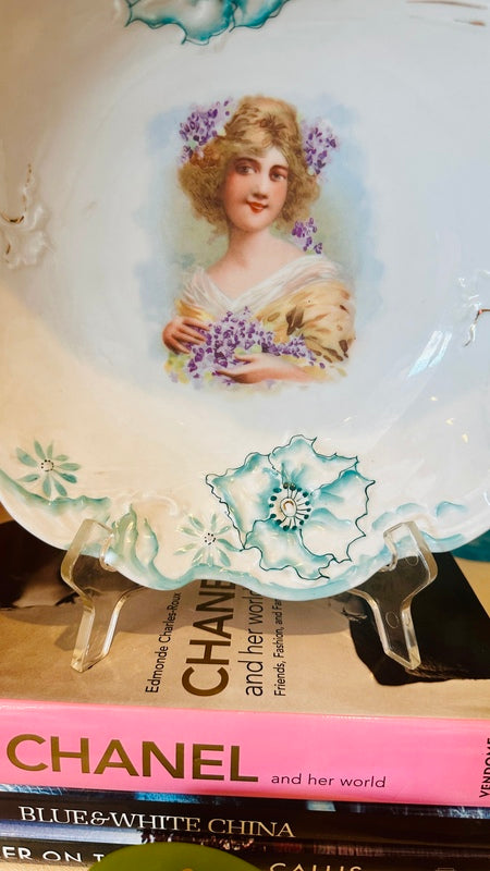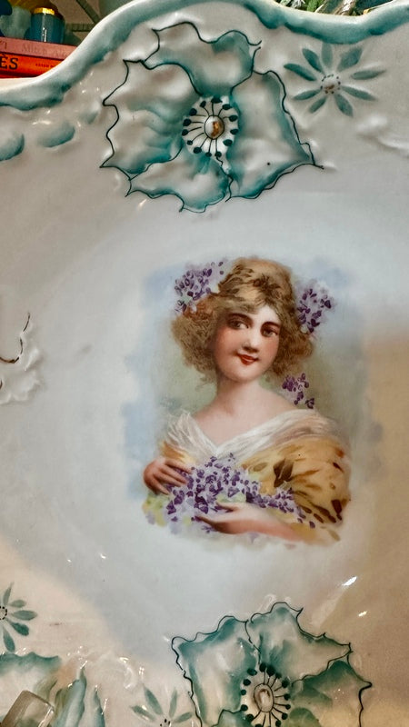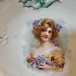 Rare Antique Bowl, Hand Painted, Victorian Decorative Portrait Plate with Lady in Center