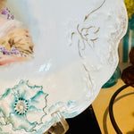 Rare Antique Victorian Bowl featuring a beautifully hand-painted decorative portrait of a lady in the center. This exquisite piece showcases intricate detailing and elegant craftsmanship, reflecting the charm and sophistication of the Victorian era Gold and turquoise detailing accent the rim. A stunning collectible, perfect as a display piece or a unique addition to any antique porcelain collection.