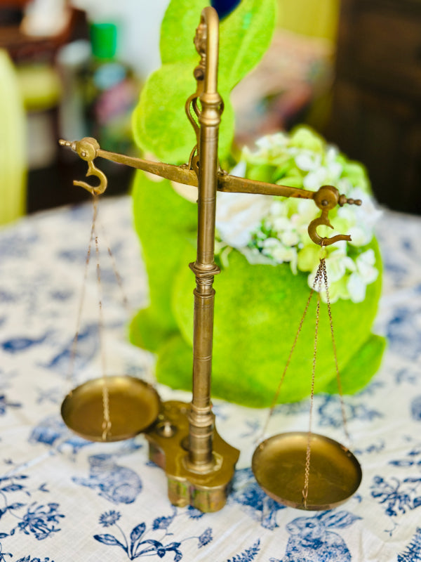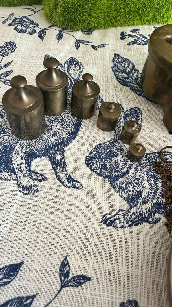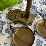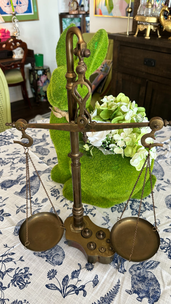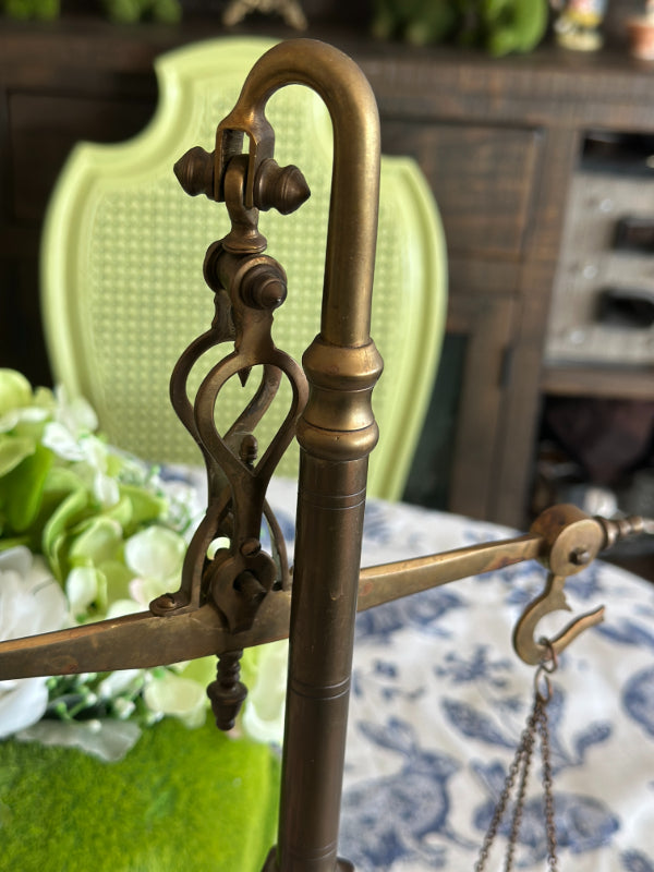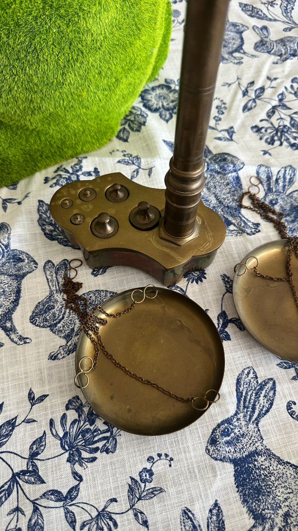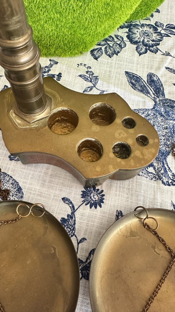 This exquisite antique brass apothecary scale with weights is a true collector’s piece, showcasing timeless craftsmanship and historic charm. Featuring a classic balance design, this scale was once used for precise measurements in apothecaries and pharmacies. Its elegant brass construction, complete with original weights, makes it a stunning display piece for vintage enthusiasts, collectors, or those looking to add a touch of history to their décor. Whether placed in an office, library, or curio cabinet, this unique scale brings character and sophistication to any space. This antique masterpiece shows it's age with a patina but can be shined up before shipping if you prefer that look.