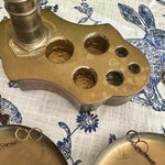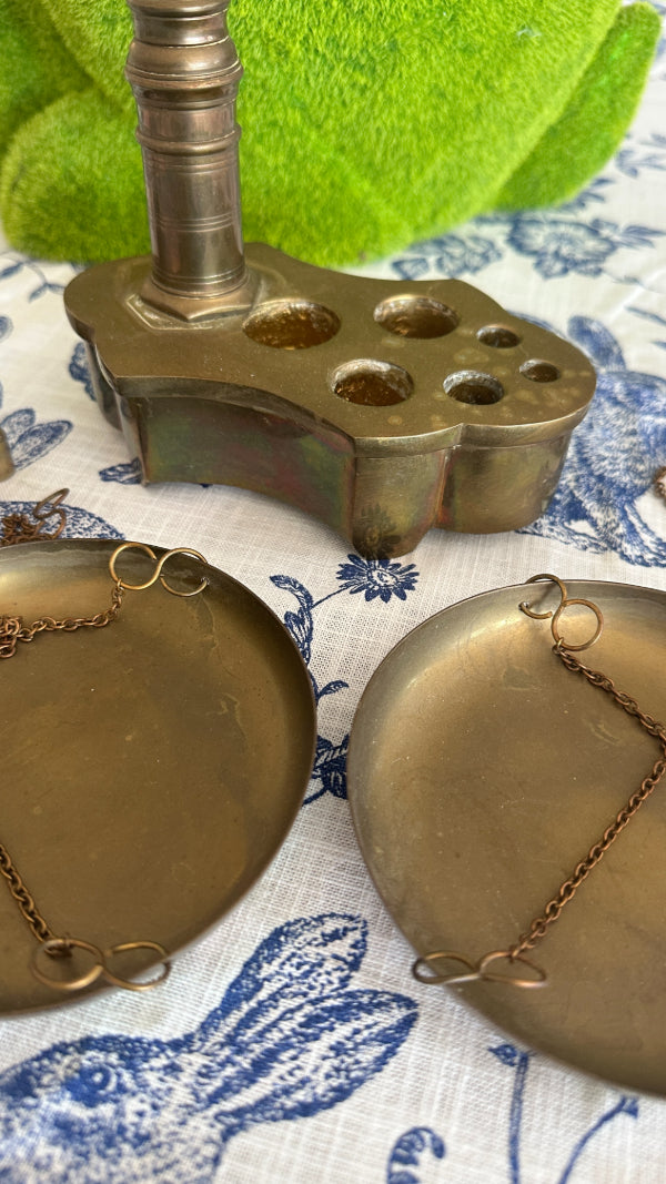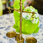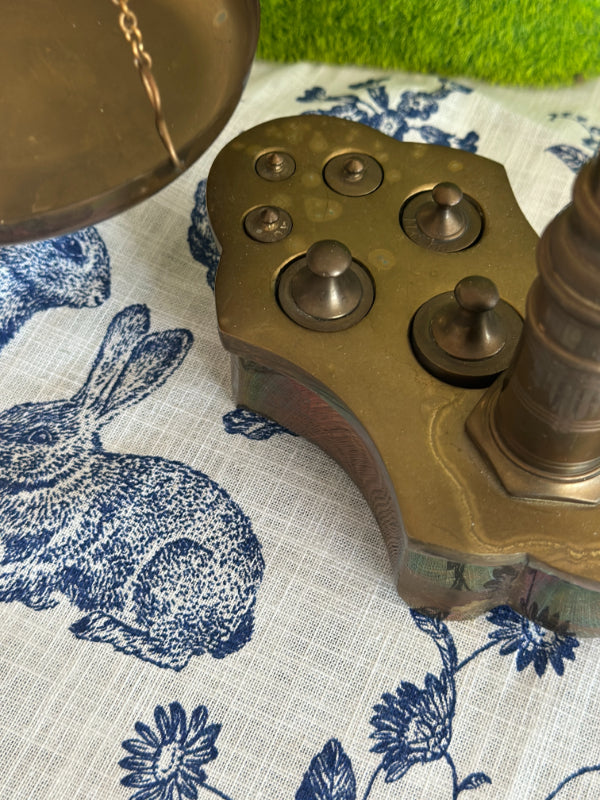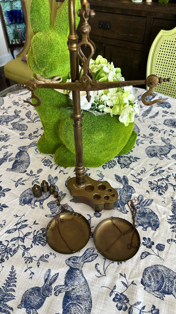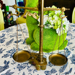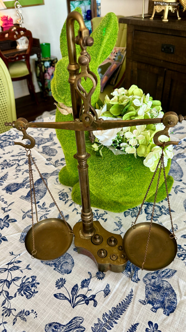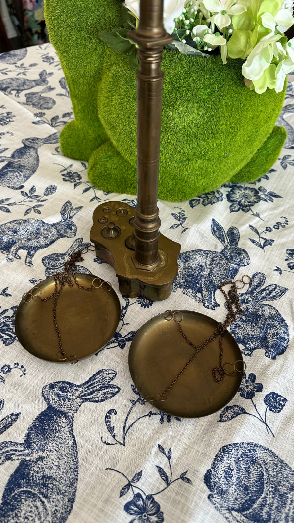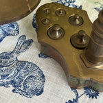 This exquisite antique brass apothecary scale with weights is a true collector’s piece, showcasing timeless craftsmanship and historic charm. Featuring a classic balance design, this scale was once used for precise measurements in apothecaries and pharmacies. Its elegant brass construction, complete with original weights, makes it a stunning display piece for vintage enthusiasts, collectors, or those looking to add a touch of history to their décor. Whether placed in an office, library, or curio cabinet, this unique scale brings character and sophistication to any space. This antique masterpiece shows it's age with a patina but can be shined up before shipping if you prefer that look.