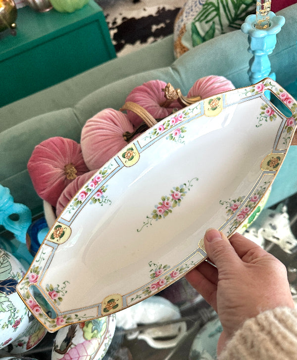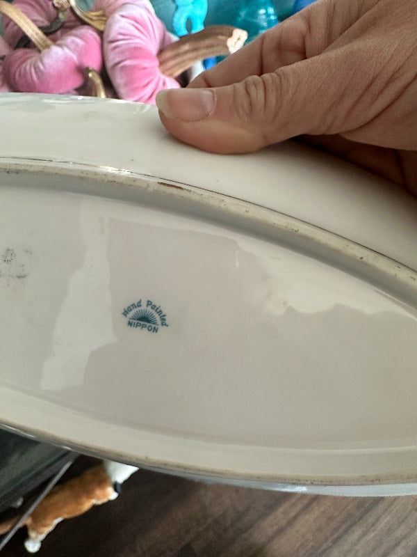 Crafted by Nippon, a name synonymous with quality and tradition, this antique celery dish is a true collector's delight. The delicate hand-painted design adds a touch of sophistication to any table setting, making it an exquisite addition to your vintage decor. The oval shape with handles at either end add a touch of detail. Amazing vintage condition and ready to display or use on your holiday dining table.