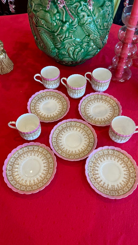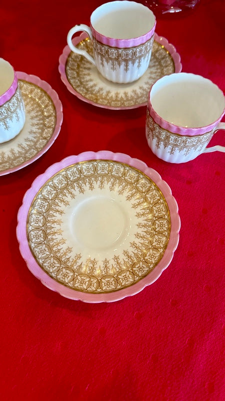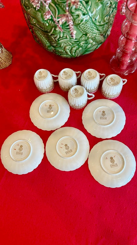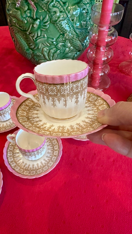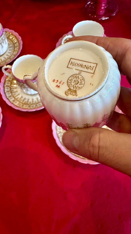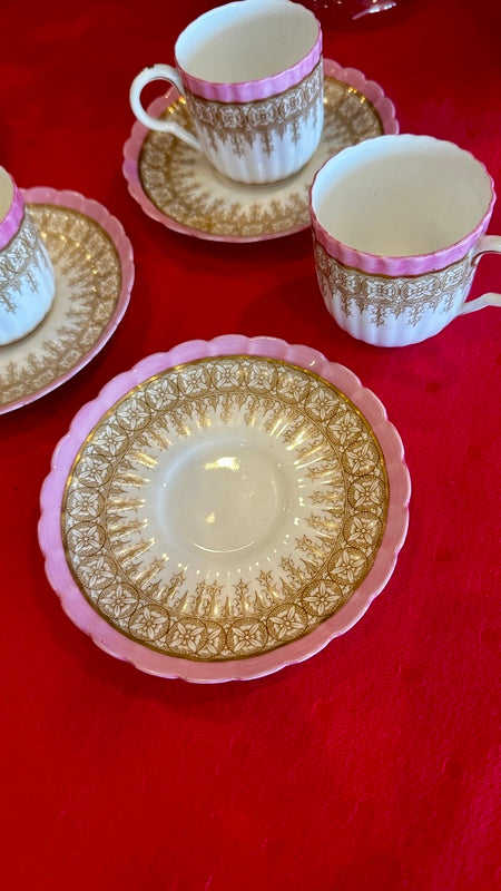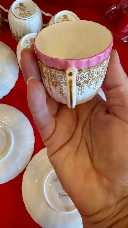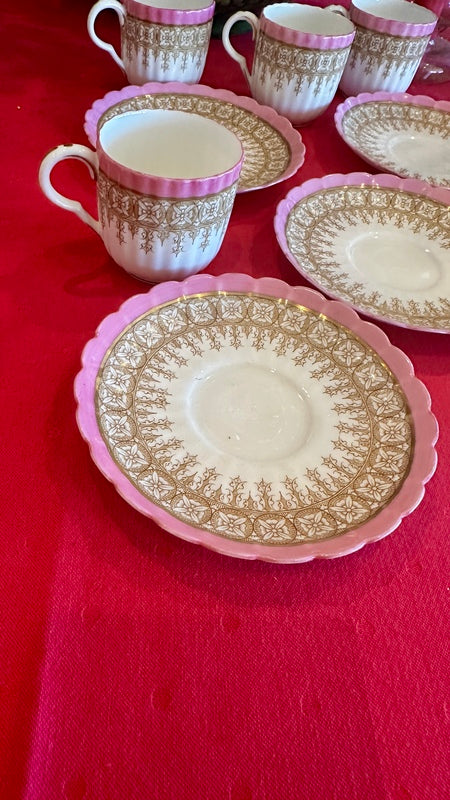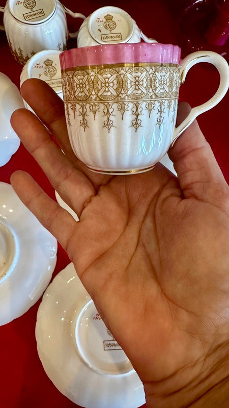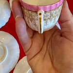 Antique Demitasse Cup and Saucer Set, Royal Worcester, 1800s, Bone China Porcelain,Pink and White Set of 5 or sold individually