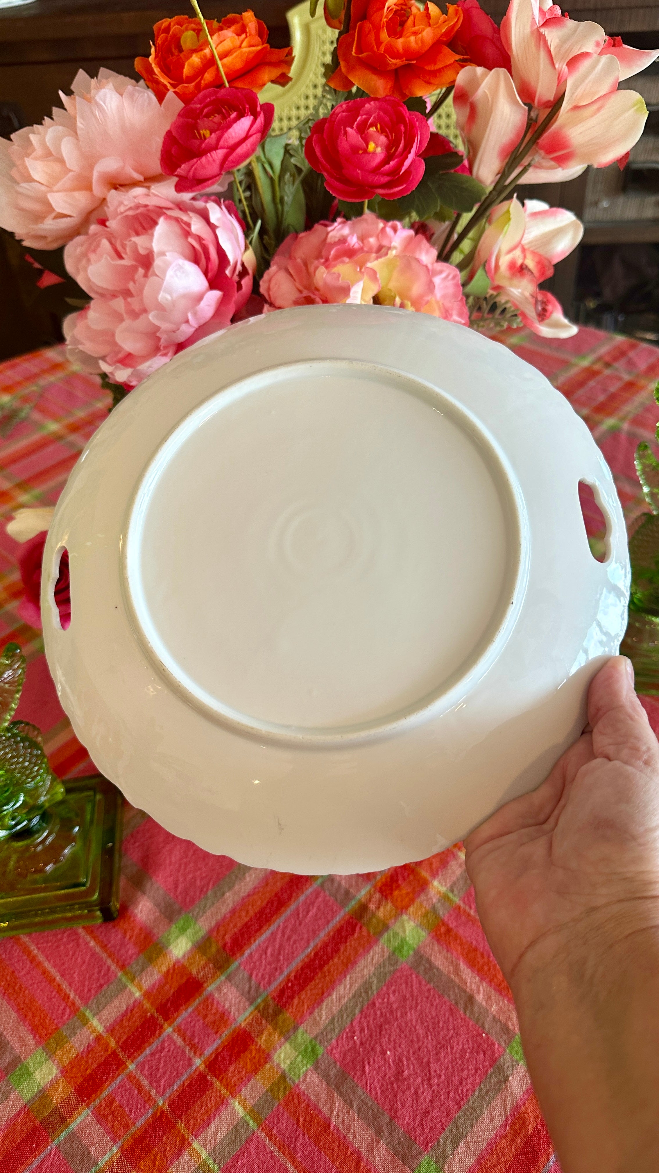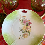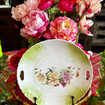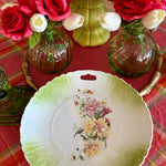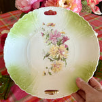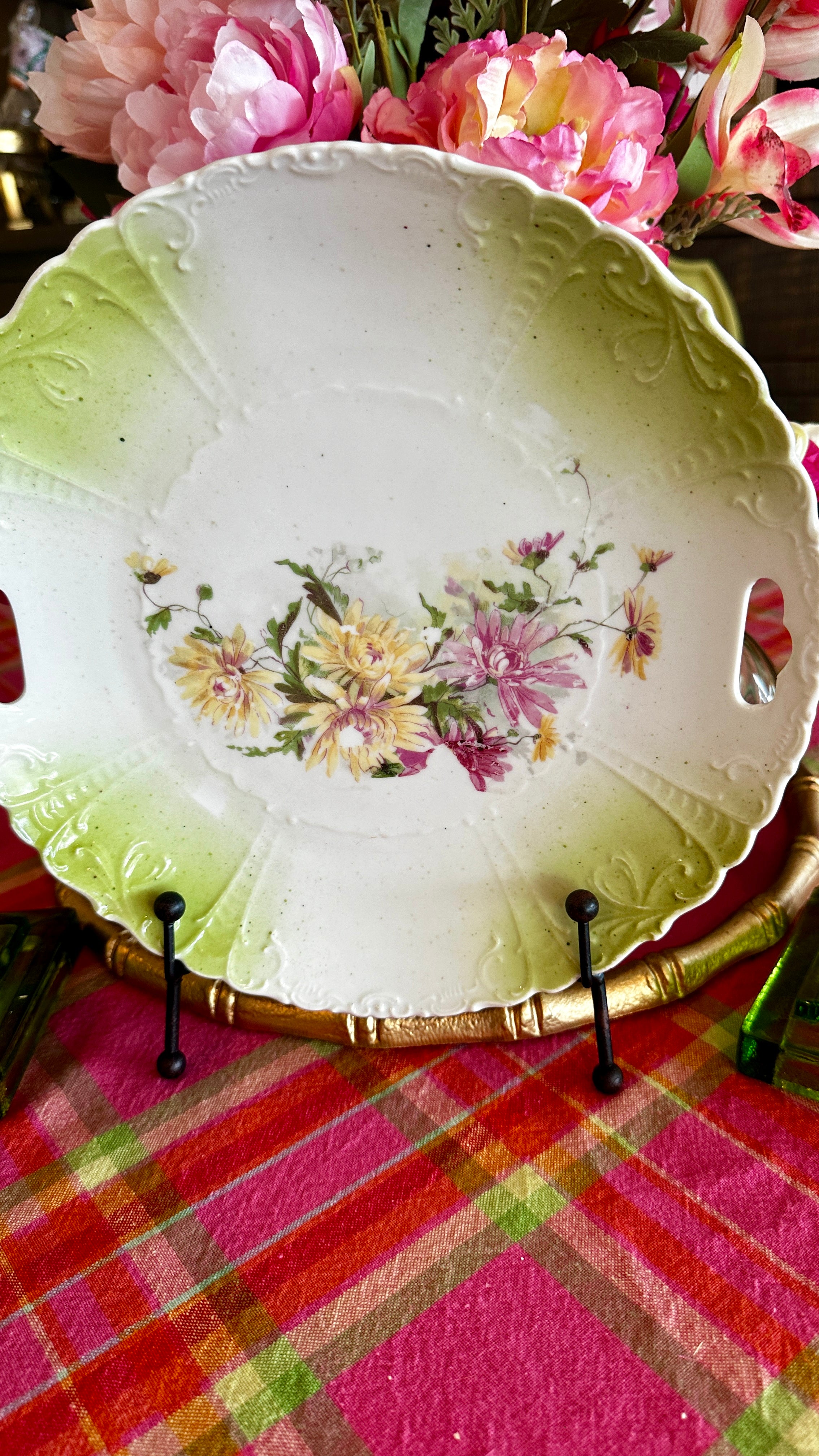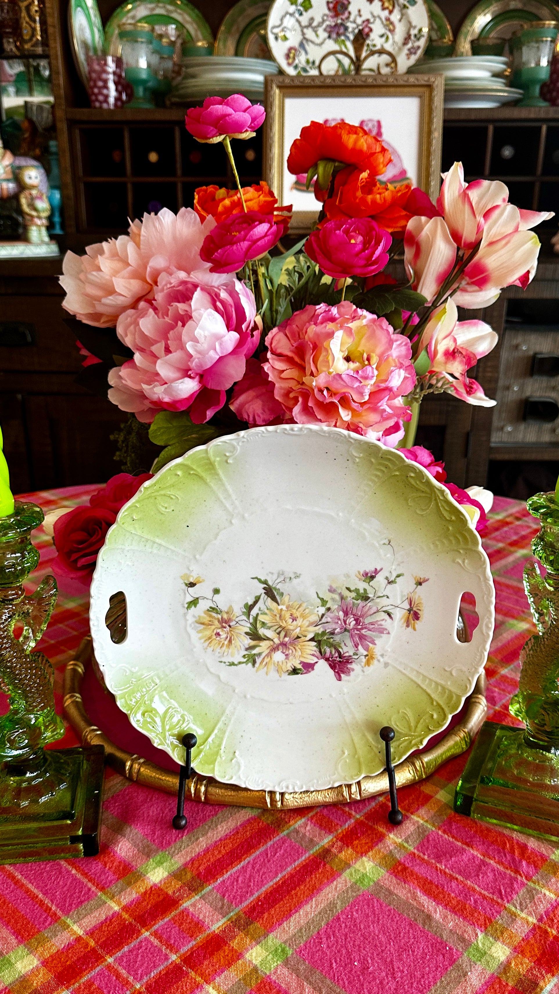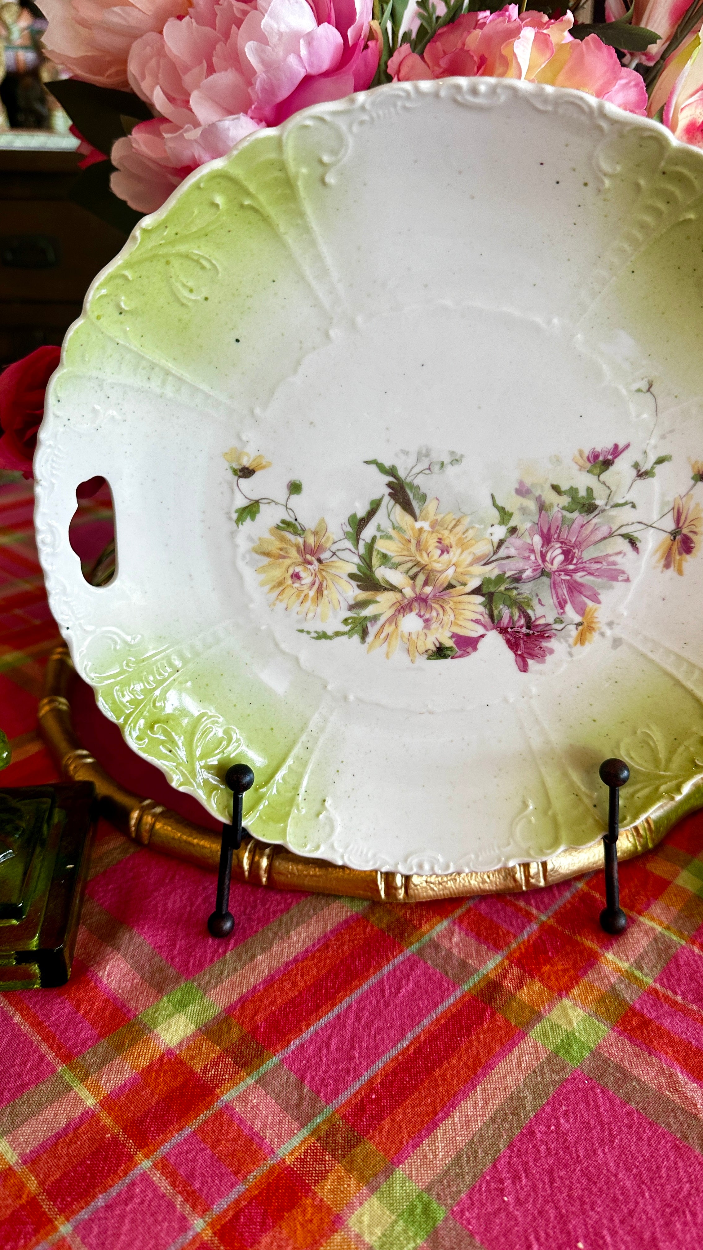 Antique Floral Plate White, Lime Green Floral, Handles, Decorative
