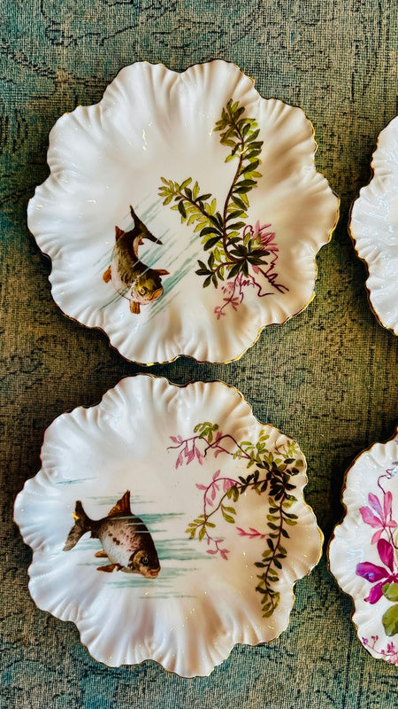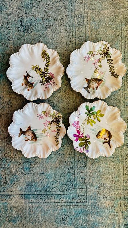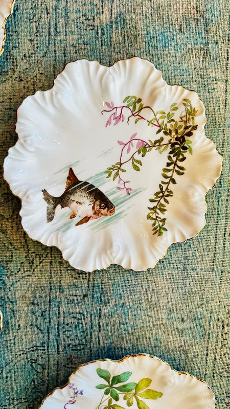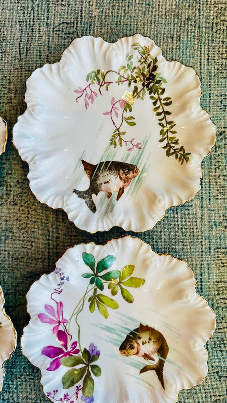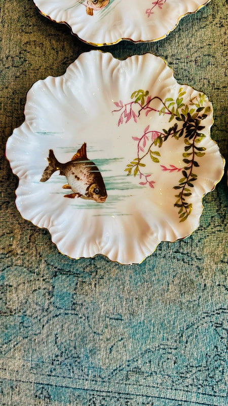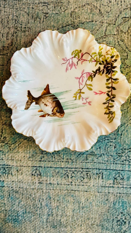 Antique Limoges Fish Plate, Hand Painted, 4 available SOLD SEPARATELY