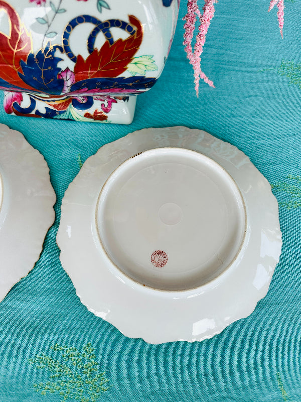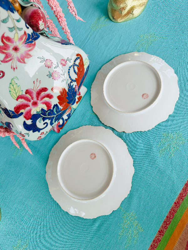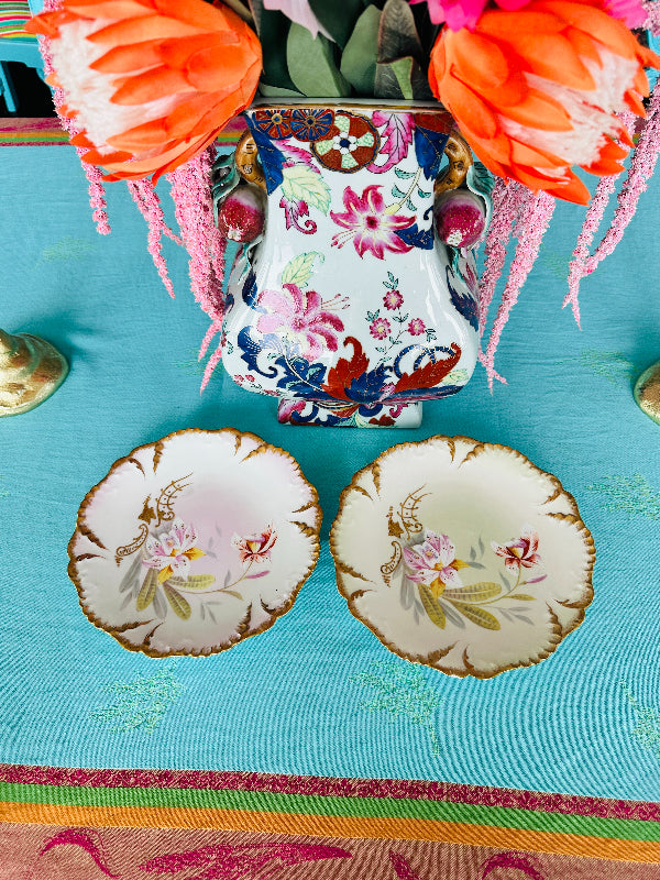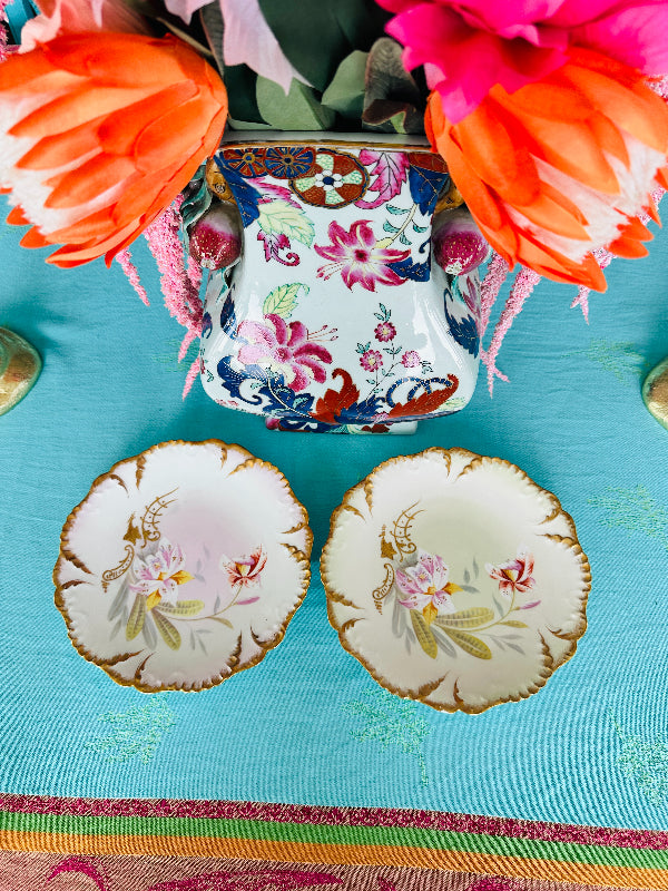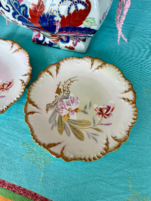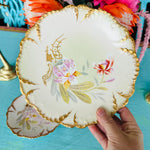 Antique Limoges Plates, Orchid, Hand Painted, Floral, Gold Trim Pair