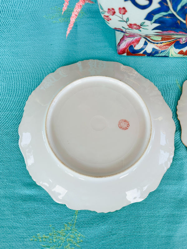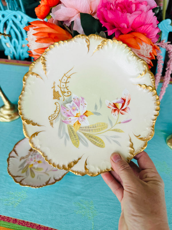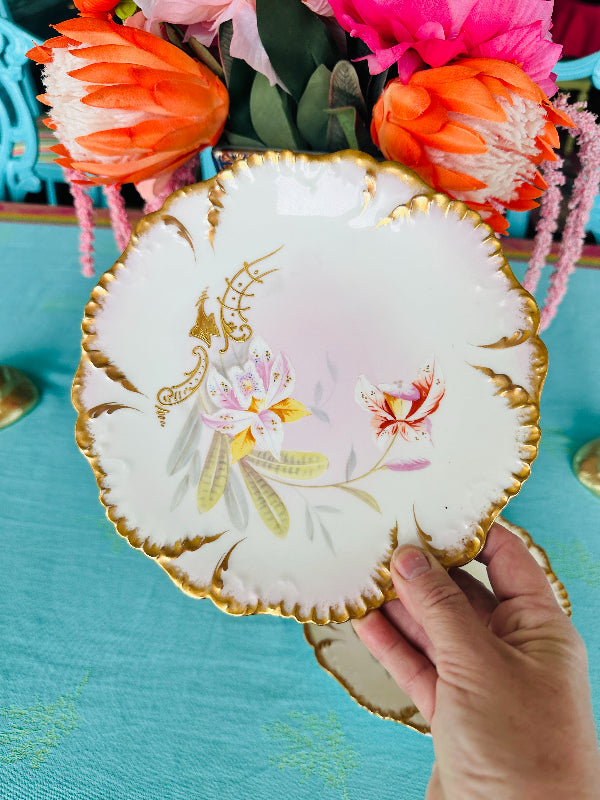 Antique Limoges Plates,Orchid, Hand Painted, Floral, Gold Trim Pair