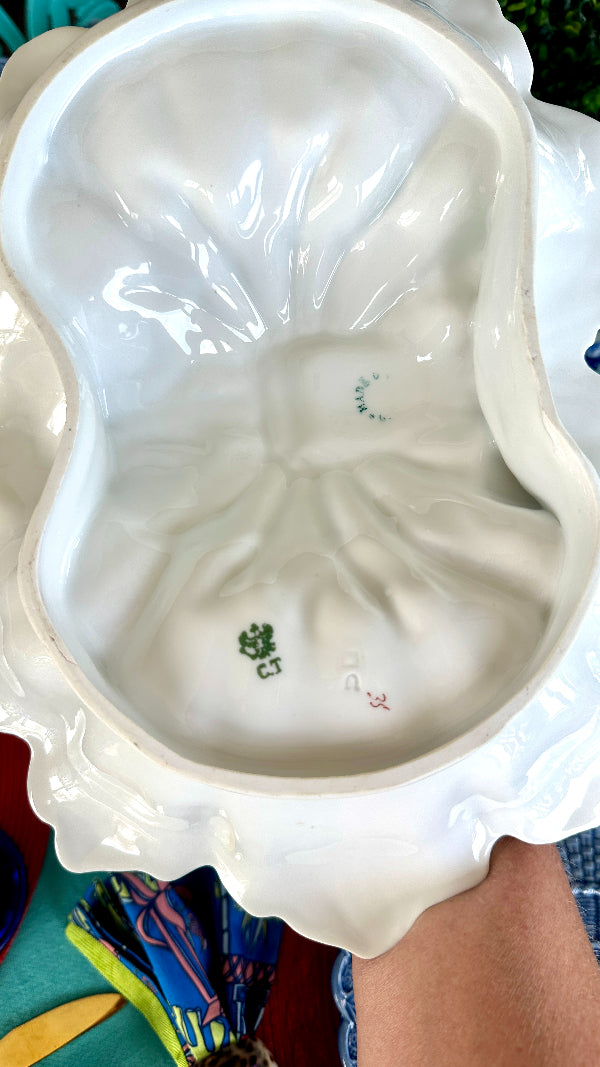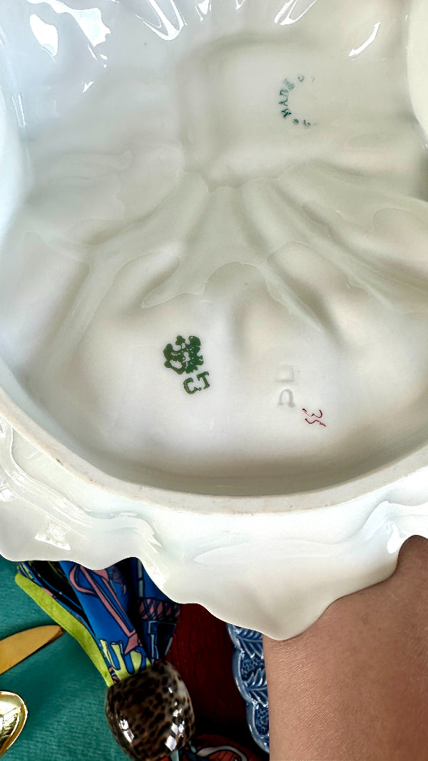 The exquisite antique lobster dish, masterfully crafted in the 19th century by the renowned Carl Tielsh porcelain manufacturer in Germany. This divided dish features intricate detailing and a beautiful finish, showcasing the high-quality craftsmanship and artistic finesse of its era. A perfect addition to any fine china collection or as a unique serving piece, this dish combines functionality with historical charm, reflecting the sophisticated dining traditions of the past. Great condition no chips or cracks.
