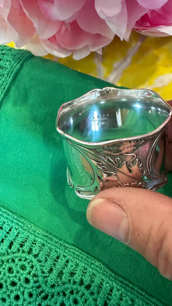 Antique Napkin Ring by Gorham. Hallmarked with Sterling B2598 and boasting an Art Nouveau design, this exquisite treasure brings vintage charm to any table setting. With no monogram, it's a versatile addition to your collection. Elevate your dining experience with this timeless piece of sterling silver craftsmanship. Add a monogram and give as a gift.