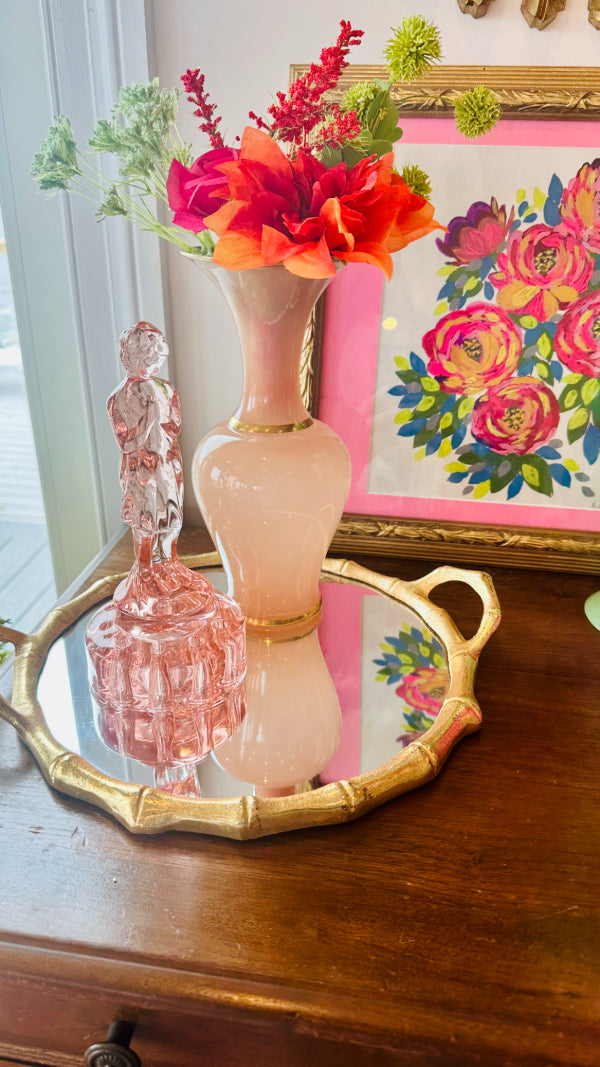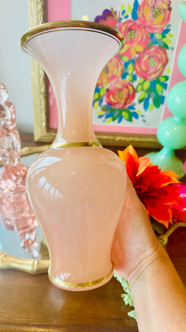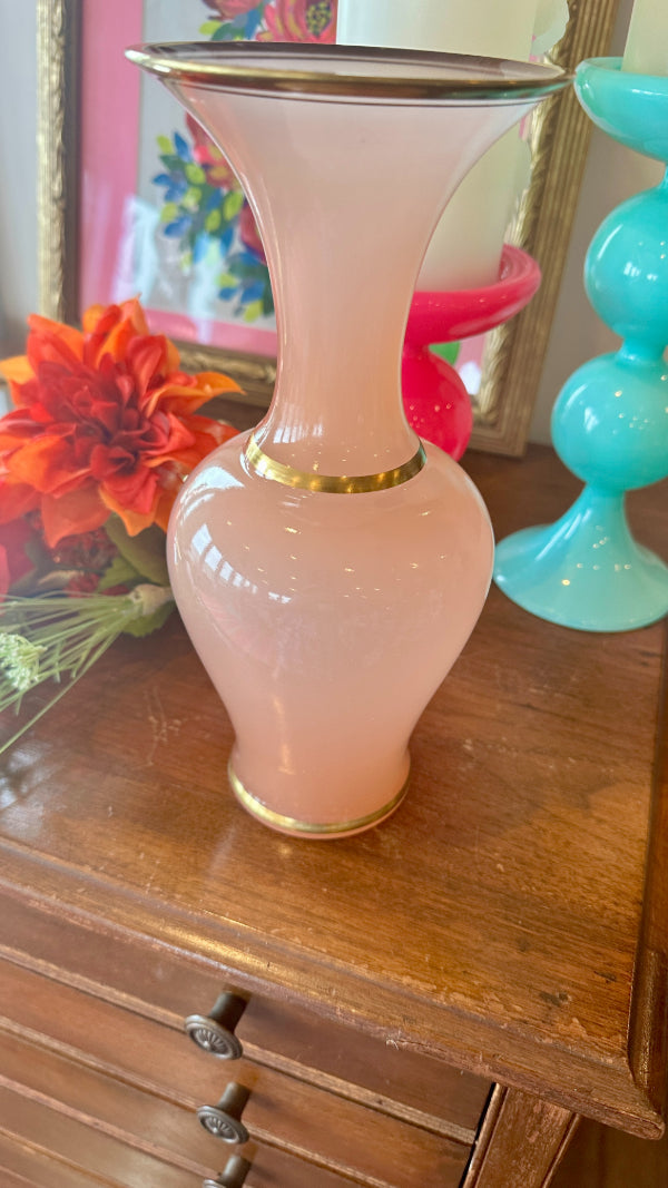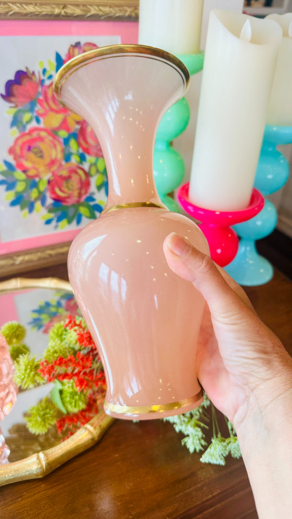 Antique Pink Opaline Vase, Gold Trim, Rare Find