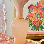Its graceful silhouette and subtle shimmer make it a stunning standalone piece or a beautiful vessel for fresh or dried blooms. Perfect for collectors of antique glass, lovers of romantic décor, or anyone drawn to the refined charm of opaline artistry.
