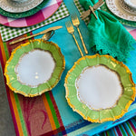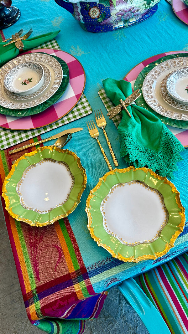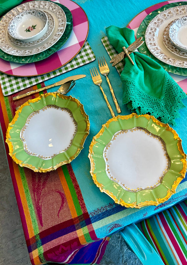 Antique Plates, Set of 2, Green, Gold White, GDD New York