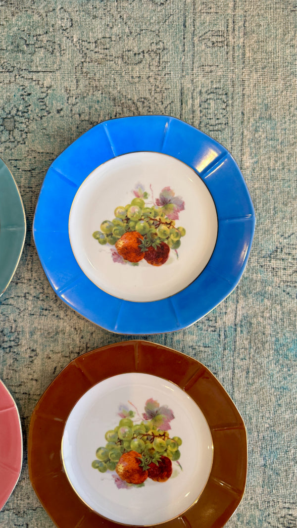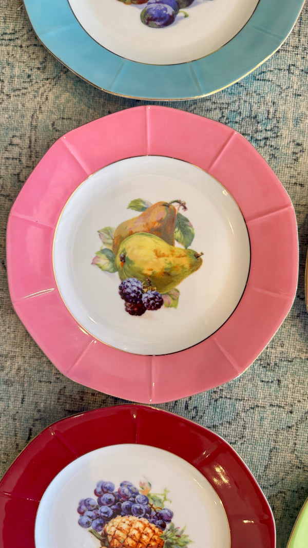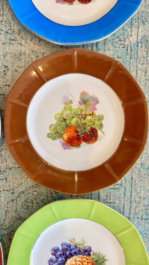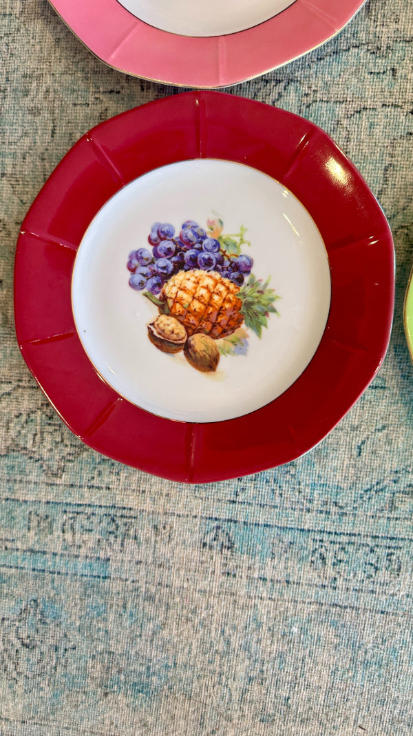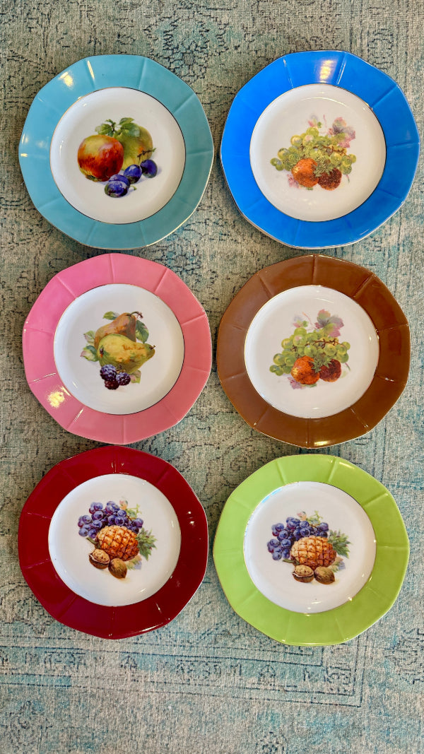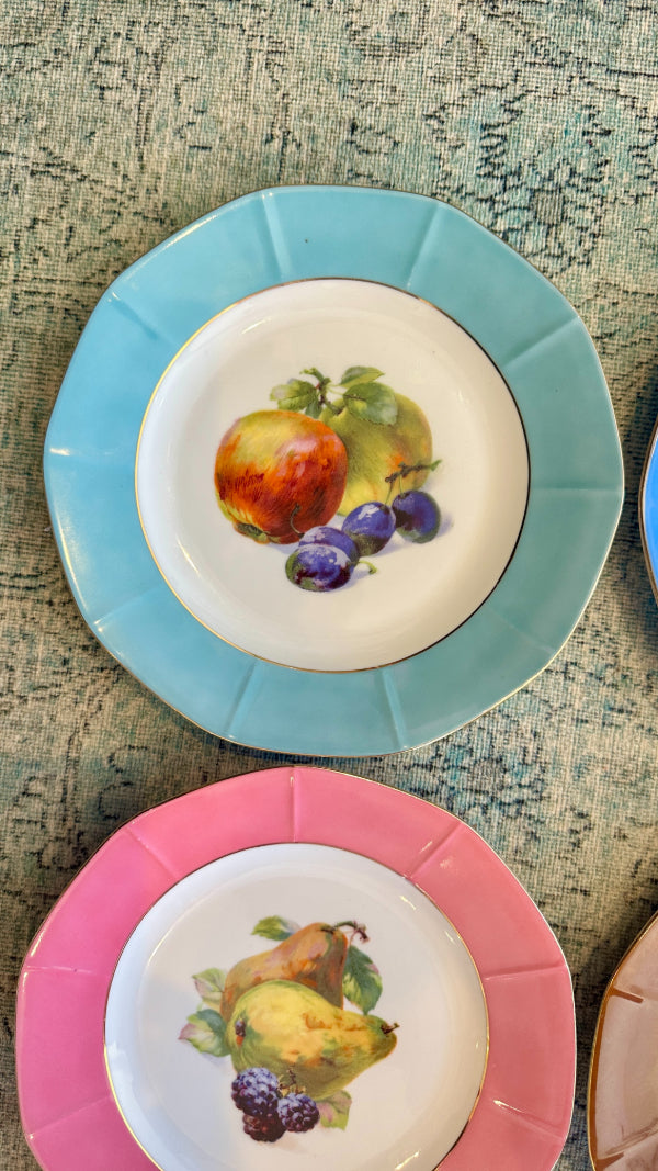 * Antique Royal Victoria Salad Plates, Fruit Motif, Czechoslovakia, Vintage Set of 6