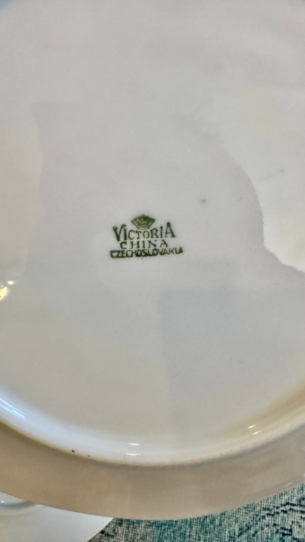 Elevate your table setting with this vintage set of 6 Antique Royal Victoria Salad Plates from Czechoslovakia. Each plate features a vibrant fruit motif with exquisite hand-painted detail, showcasing the craftsmanship and elegance of early 20th-century European porcelain. Perfect for collectors, vintage tableware enthusiasts, or as a charming addition to your dining décor, these plates bring a touch of timeless beauty and sophistication to every meal.