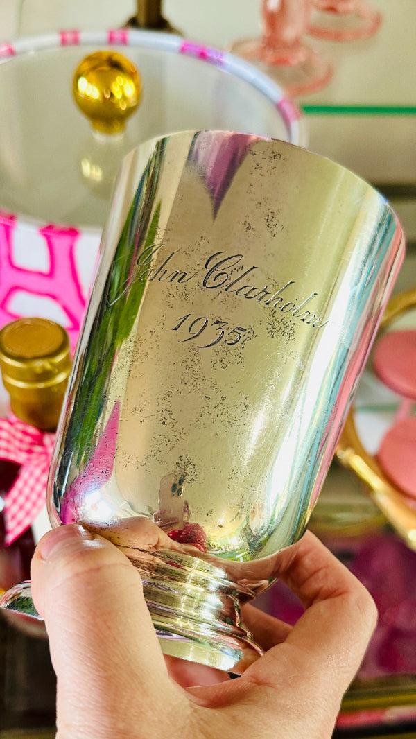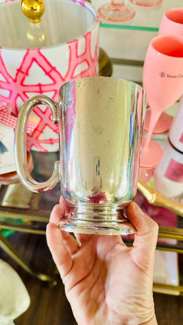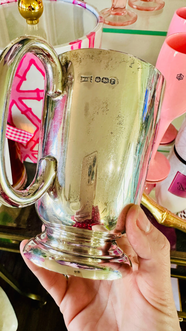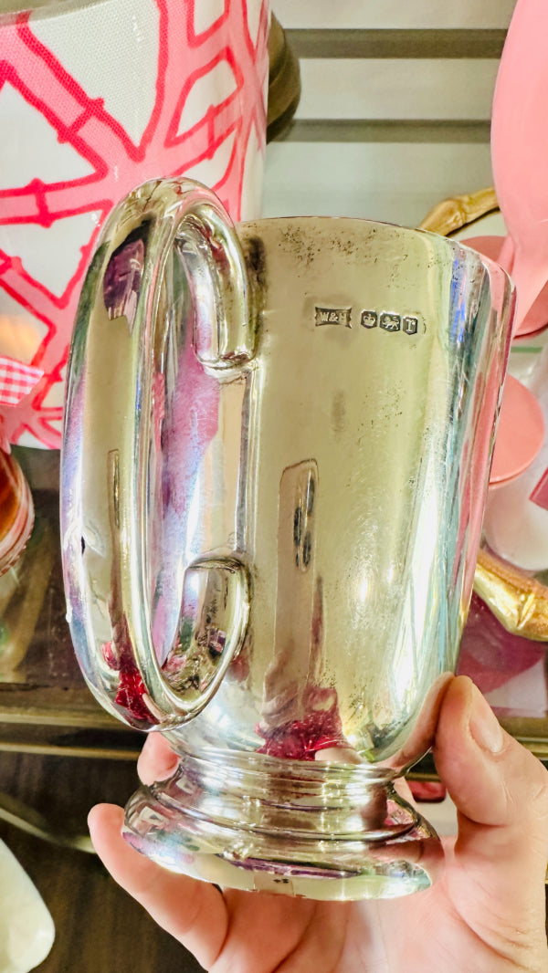 Antique Sterling Silver Handled Mug, 1920s Engraved "John Clarholm 1935", Maker's Mark