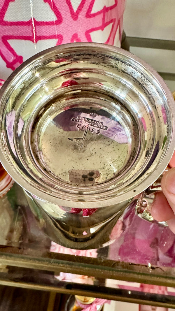 Discover a rare and elegant piece of history with this Antique Sterling Silver Handled Mug, crafted by the renowned Walker & Hall of Sheffield in the 1920s. Featuring a classic and refined design, this sterling silver mug boasts a gracefully curved handle and a polished finish that exudes timeless charm.