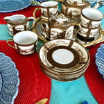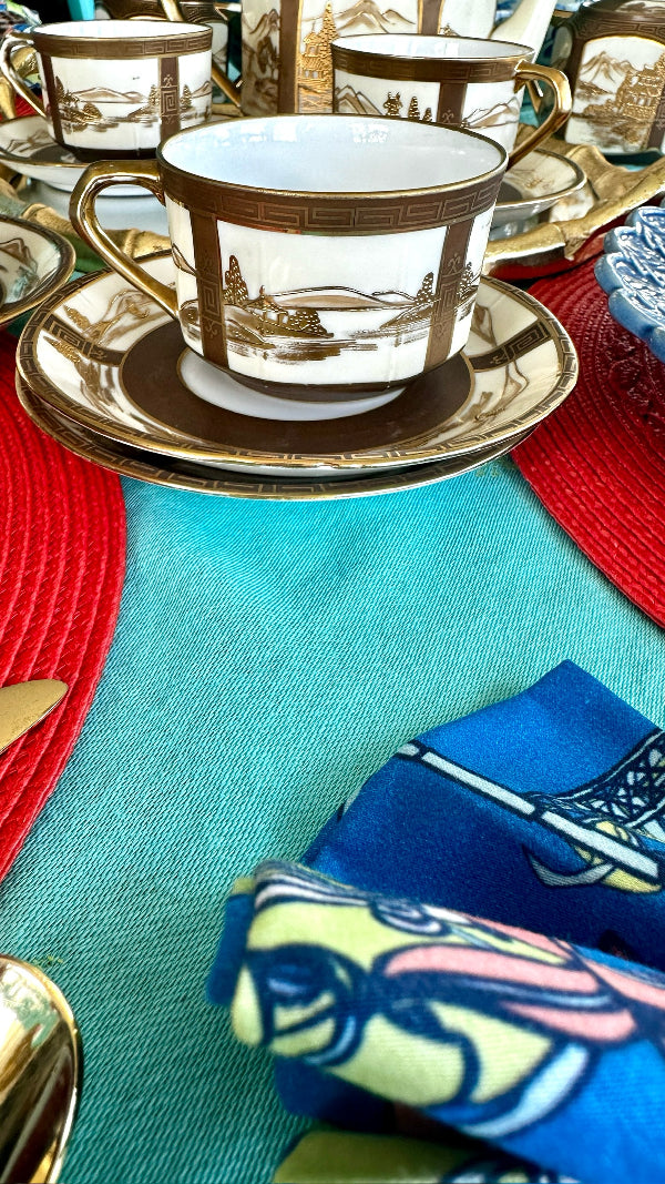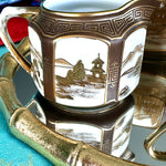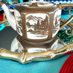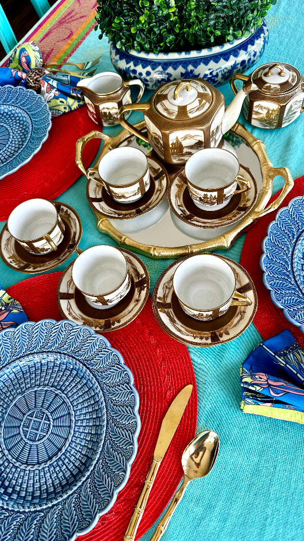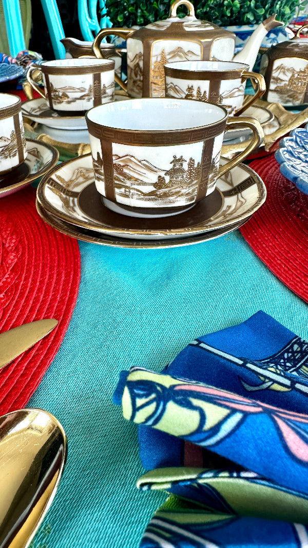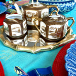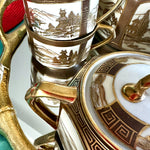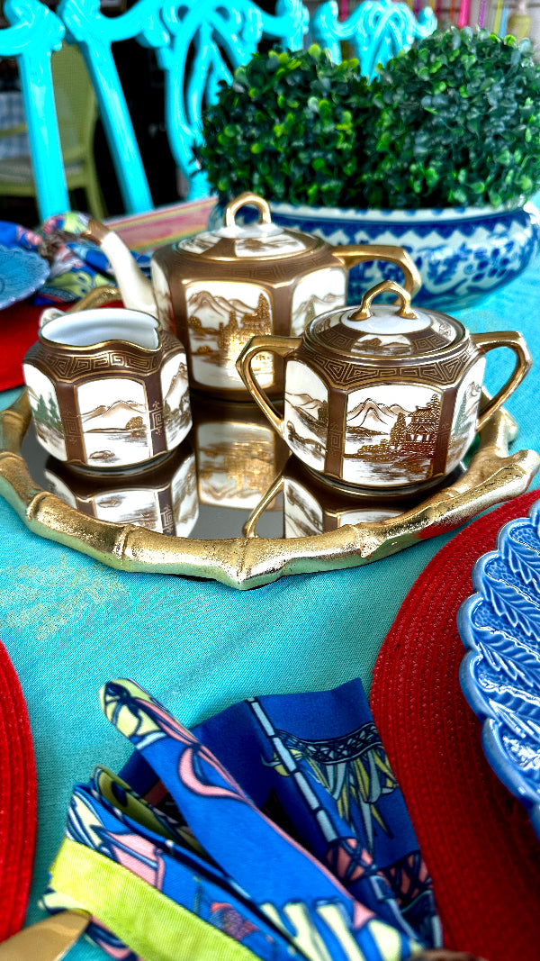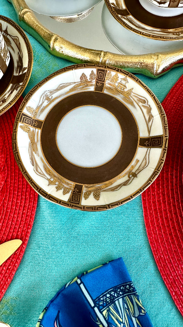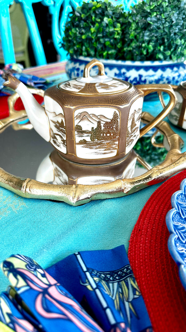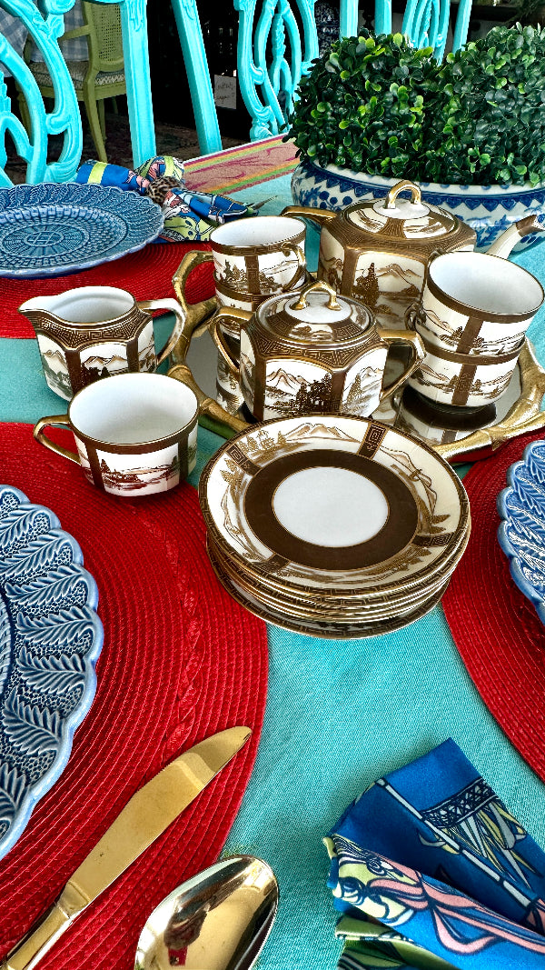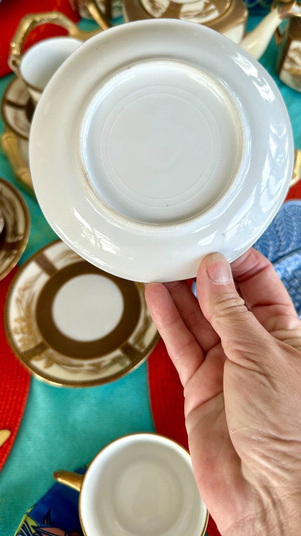 Experience timeless elegance with this exquisite 14-piece antique tea set by Noritake Morimura Bros. This hand-painted Gold, brown and cream Japanese set includes a lidded teapot, lidded sugar bowl, creamer, five teacups, and six saucers, each piece reflecting the exceptional craftsmanship and intricate artistry of Noritake. Perfect for adding a touch of vintage charm to your tea gatherings, this set beautifully combines functionality and aesthetic appeal.