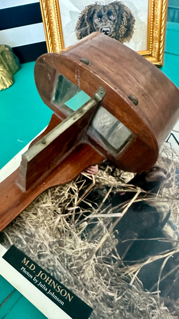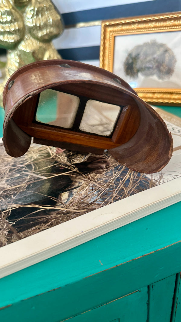 Explore the past through this antique wooden stereoscope, “The Saturnscope.” A finely crafted 19th-century view finder designed for stereoview cards, it offers a fascinating glimpse into early visual entertainment and makes a striking addition to any vintage or optical collection. Slight wear typical with age.