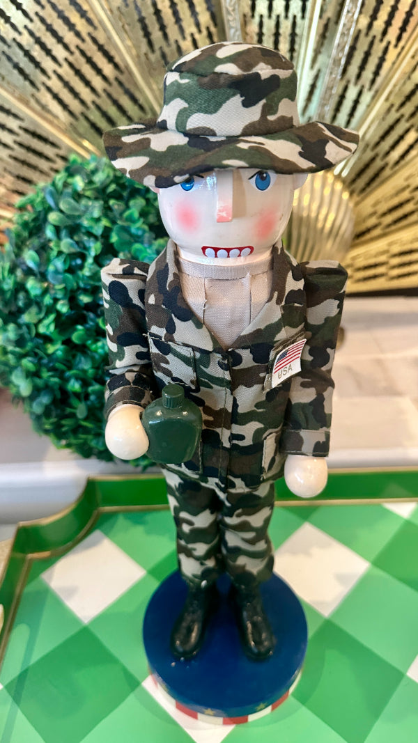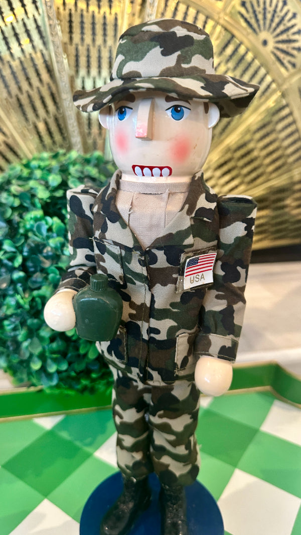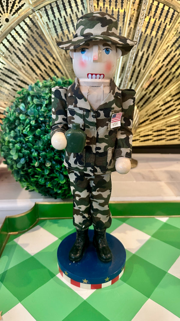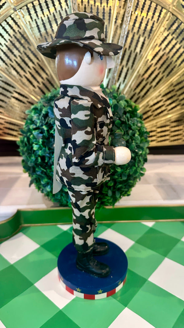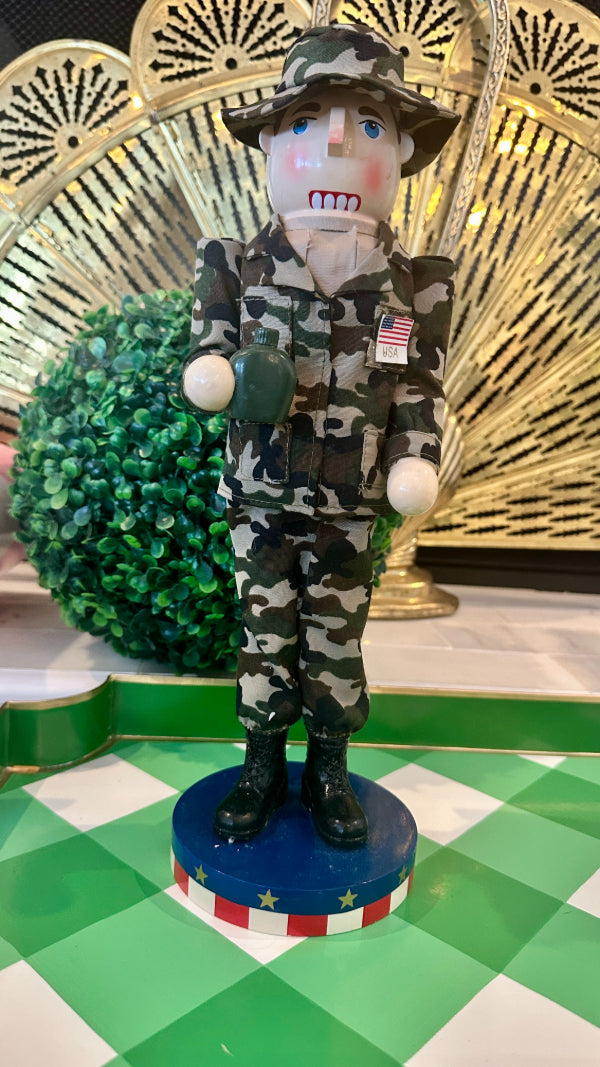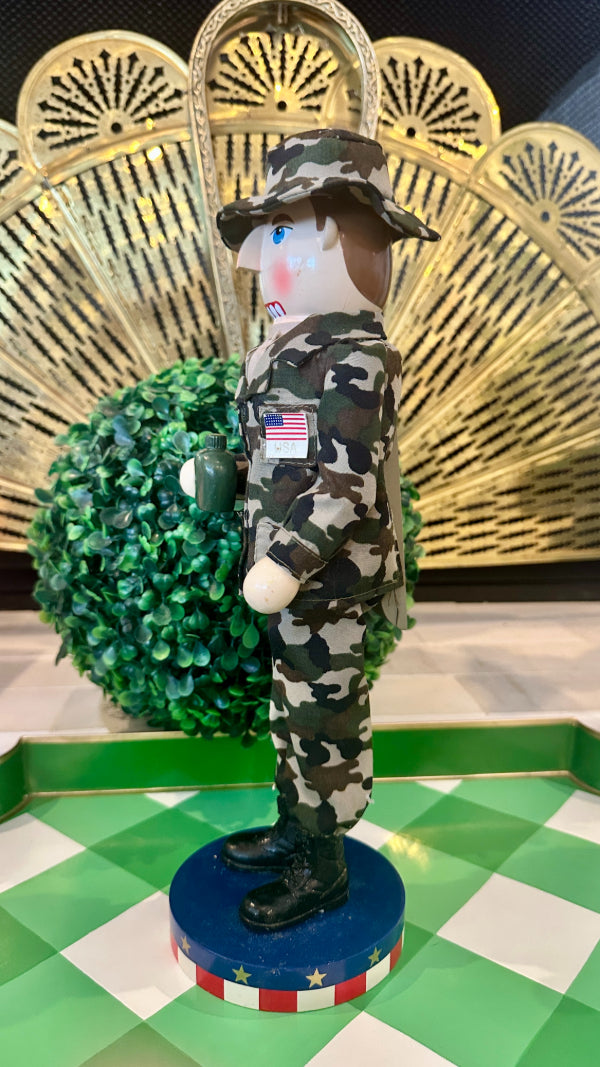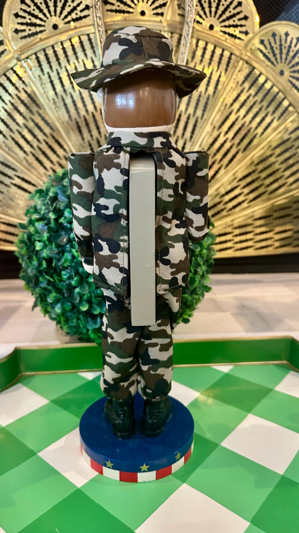 Salute the season with this Army Soldier Nutcracker, a bold and patriotic addition to your holiday décor. Crafted with traditional nutcracker charm, this figure features detailed military-inspired attire and a commanding presence. Perfect for collectors, gift-giving, or adding a touch of honor and pride to your Christmas display.