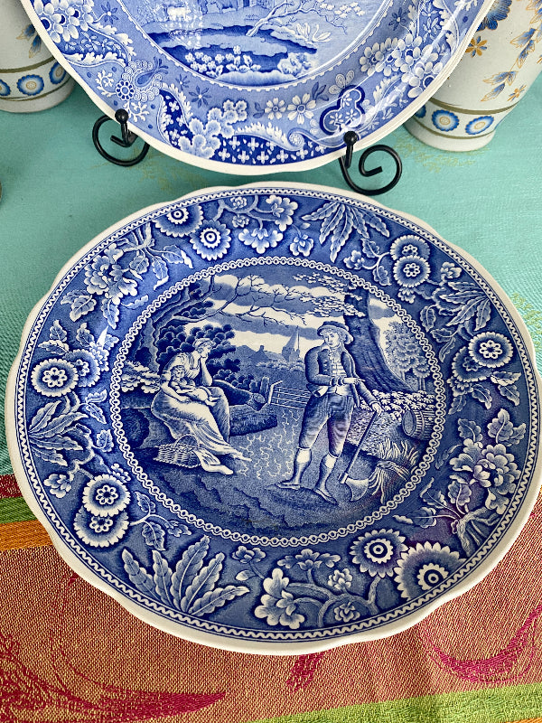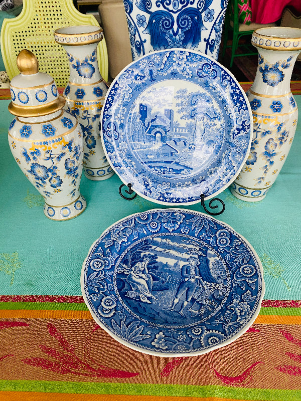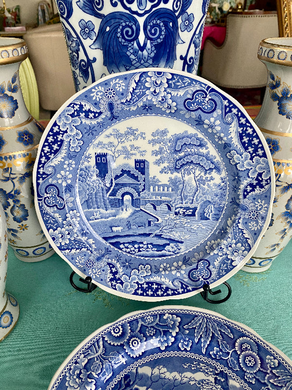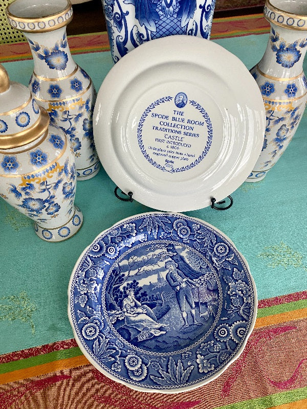 Spode Plates Blue & White, Blue Room Collection, Castle and Woodman