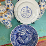 Spode "Blue Room" plates have been highly collectible for their high quality and representation of antique plates. Each has a different scene with a description of when the design was first introduced. They are great to fill a china cabinet, add to a shelf, or use on your table. These are in perfect condition no chips or cracks.