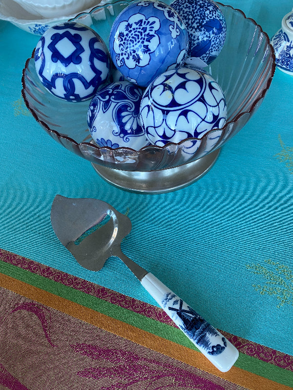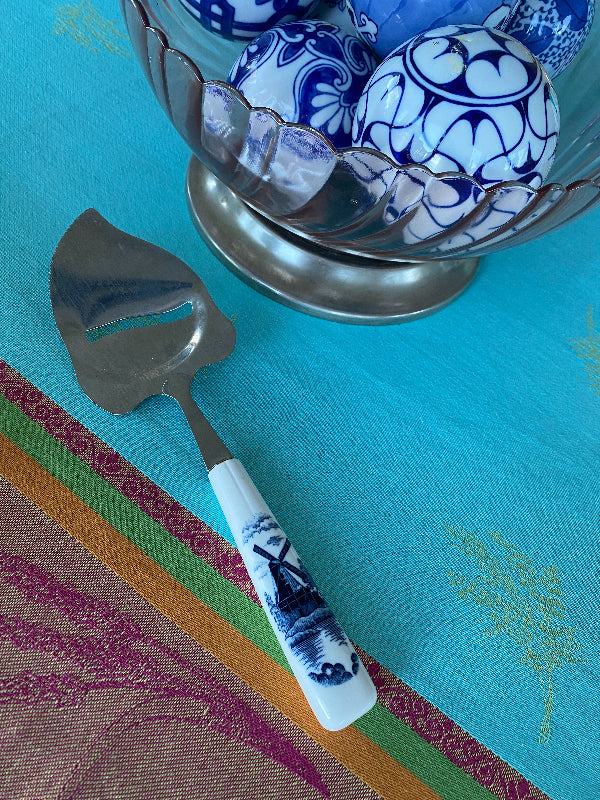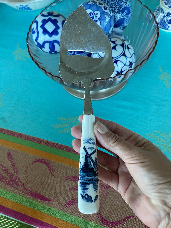 Vintage Cheese Knife, Blue & White Windmill Pattern, Delft Style