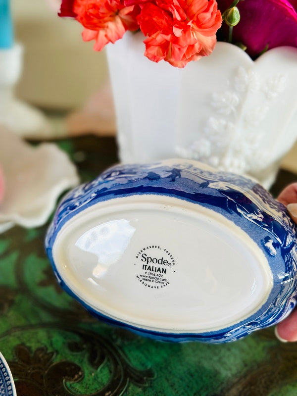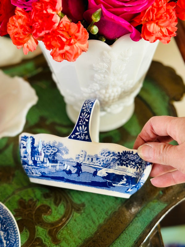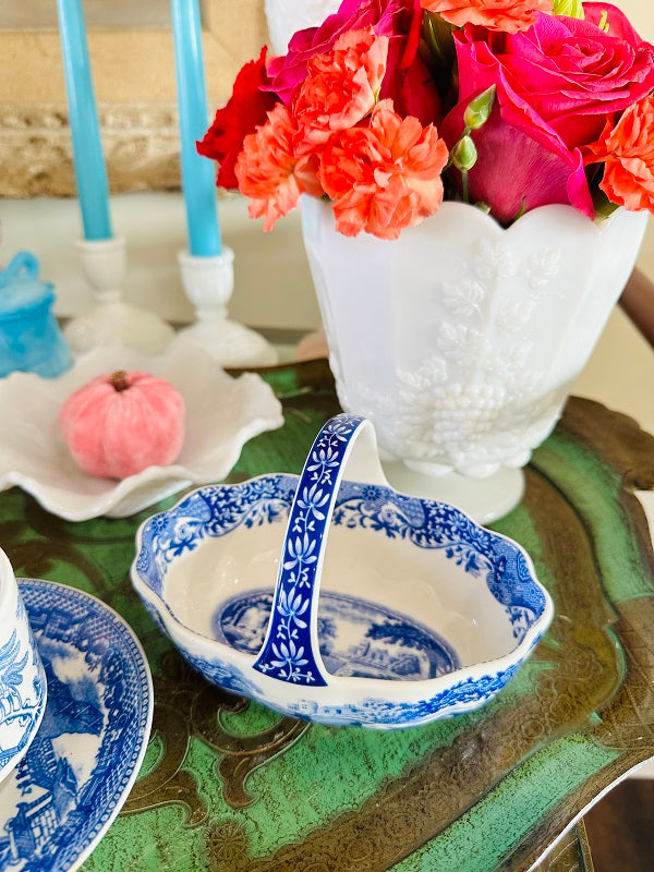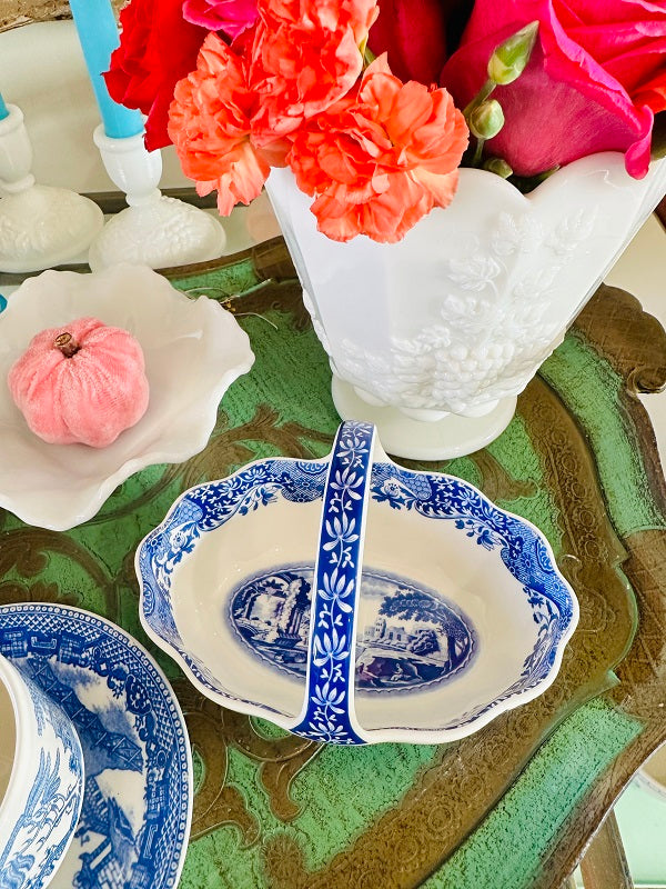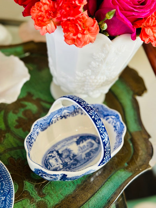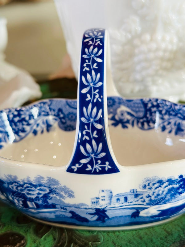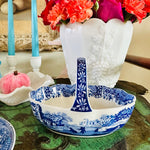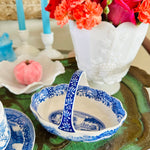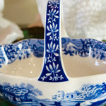 This beautiful basket is a reproduction of the Italian pattern circa 1816. It's a delicate porcelain with a gorgeous pastoral scene. Add something sweet or salty and give as a gift. Perfect for the hostess, teacher, nurse or friend. The classic look of blue and white is always right.