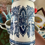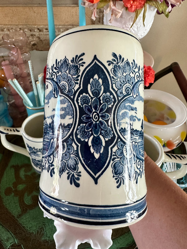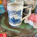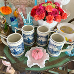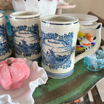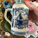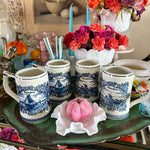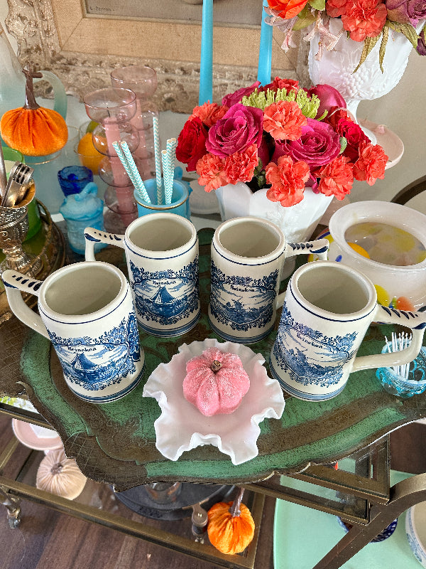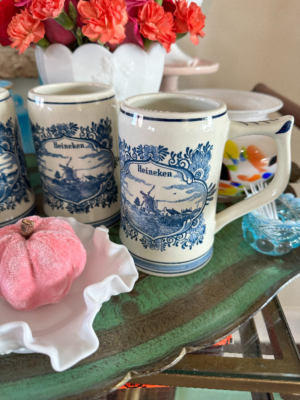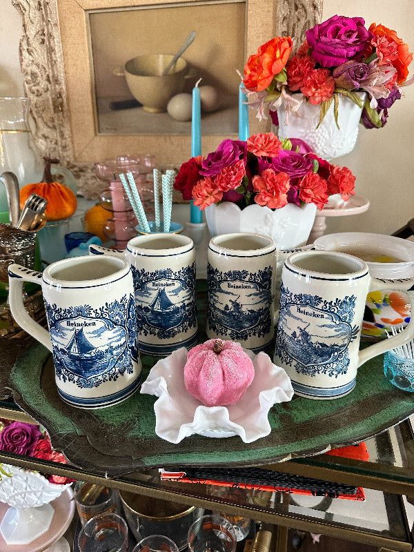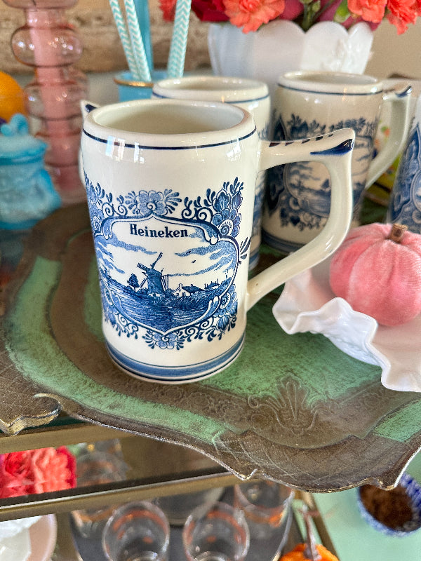 Vintage Beer Steins Blue Delft, Heineken, Chinoiserie, Blue and White, Set of 4