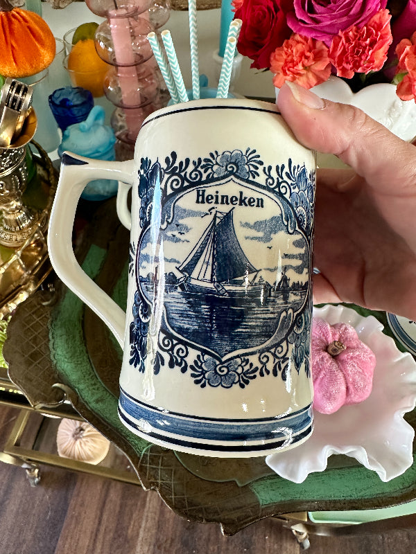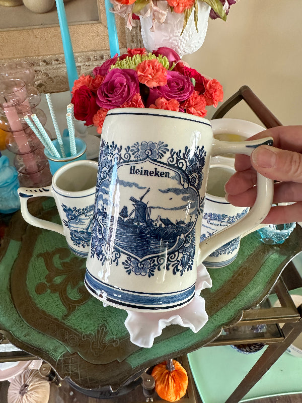 Cheers to this set of Delft Heineken mugs!! Grab your favorite craft beer, pour and share with your friends! Makes the perfect gift for the college graduate, millennial or beer lover! Pristine condition.