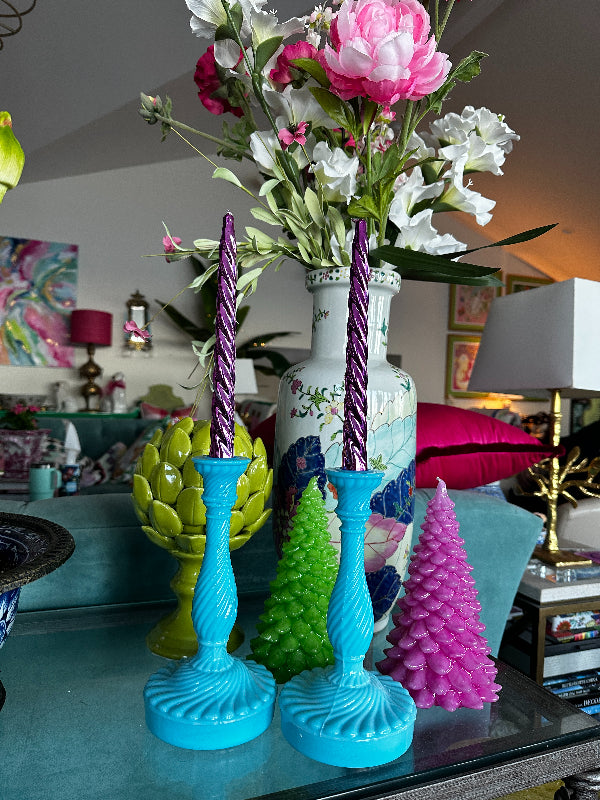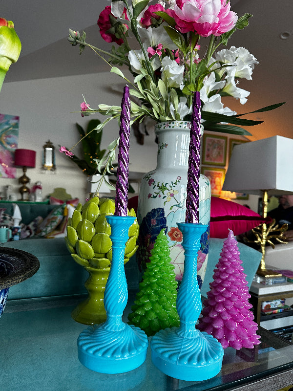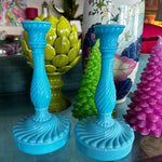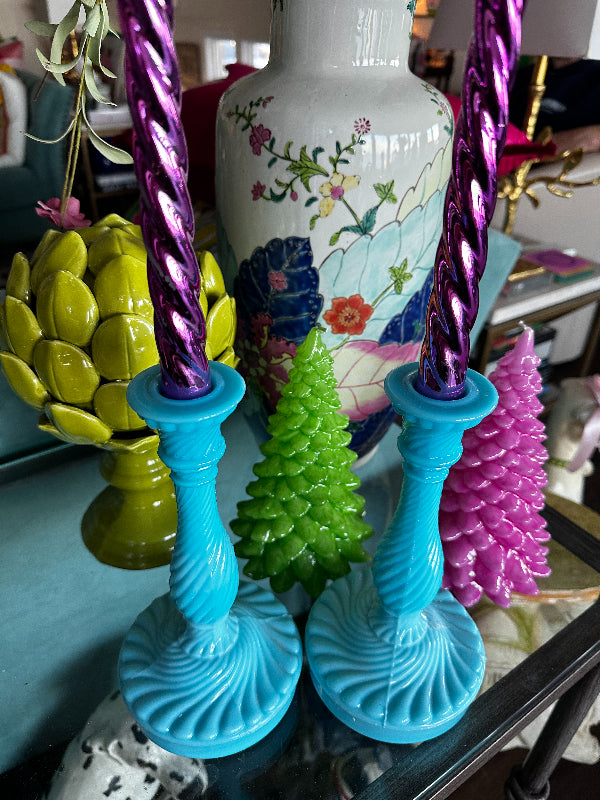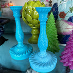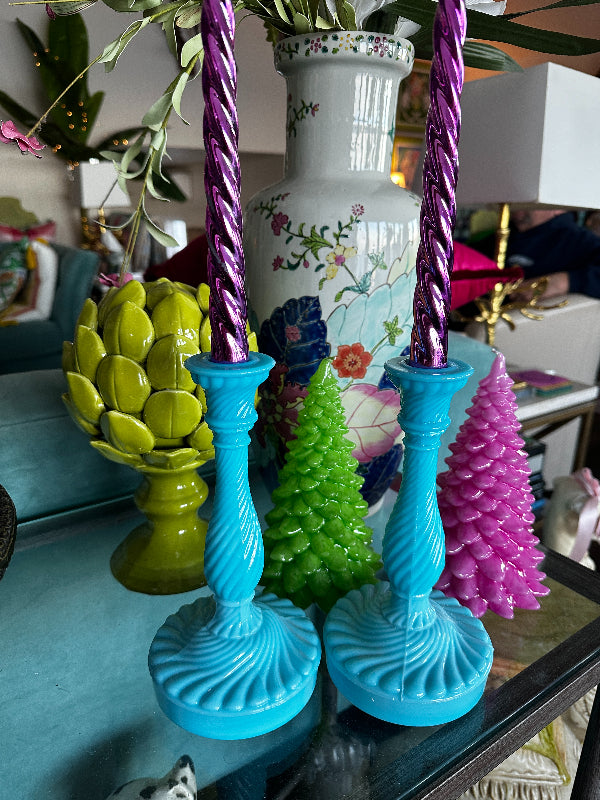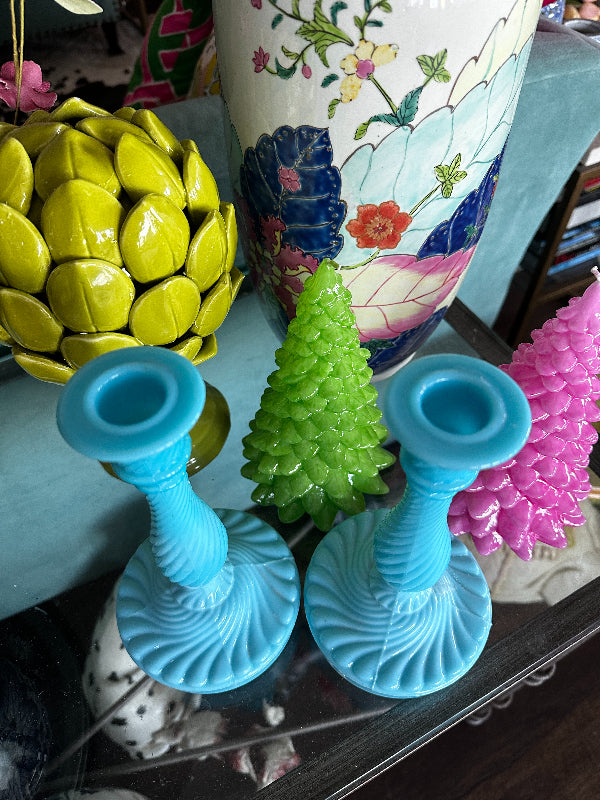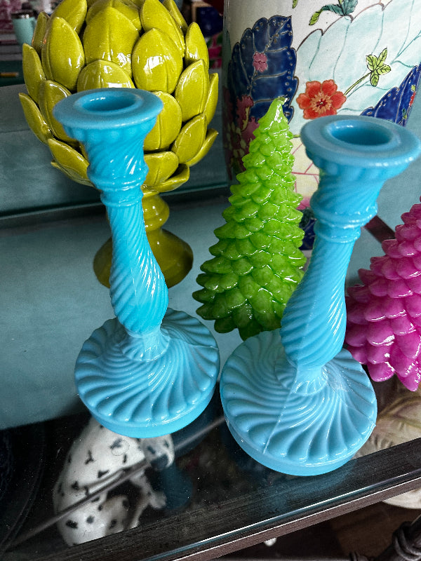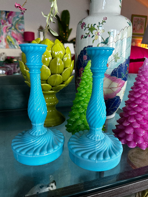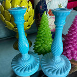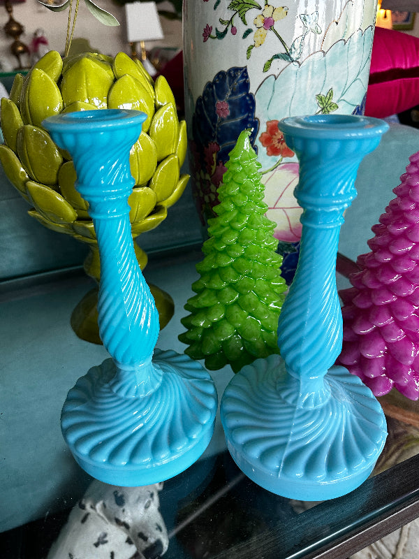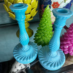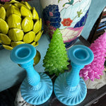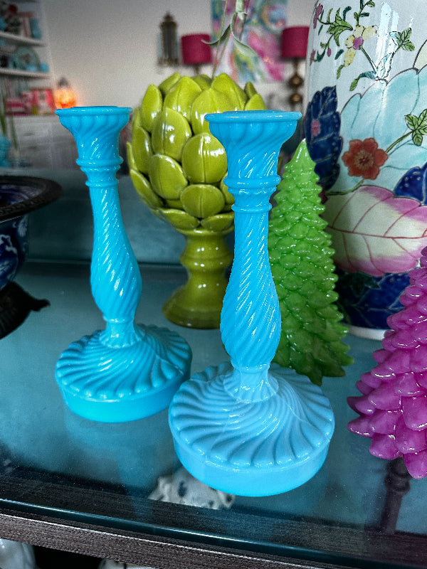 Vintage Candle Holders, Blue Opaline, Portieux Vallerysthal, Blue Opaline Milk Glass