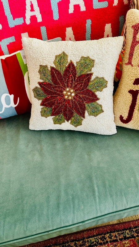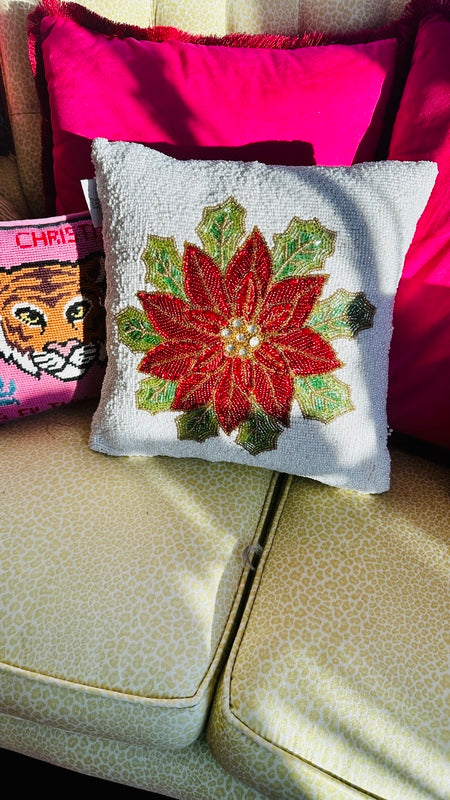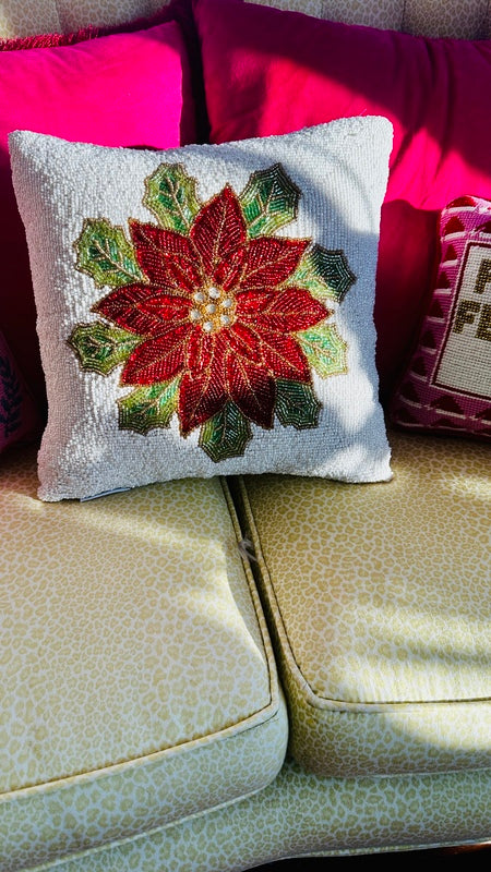 Beaded Poinsettia Pillow