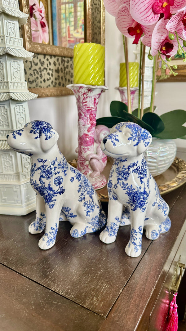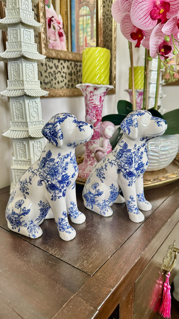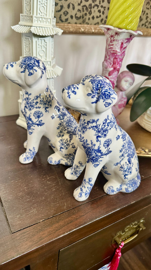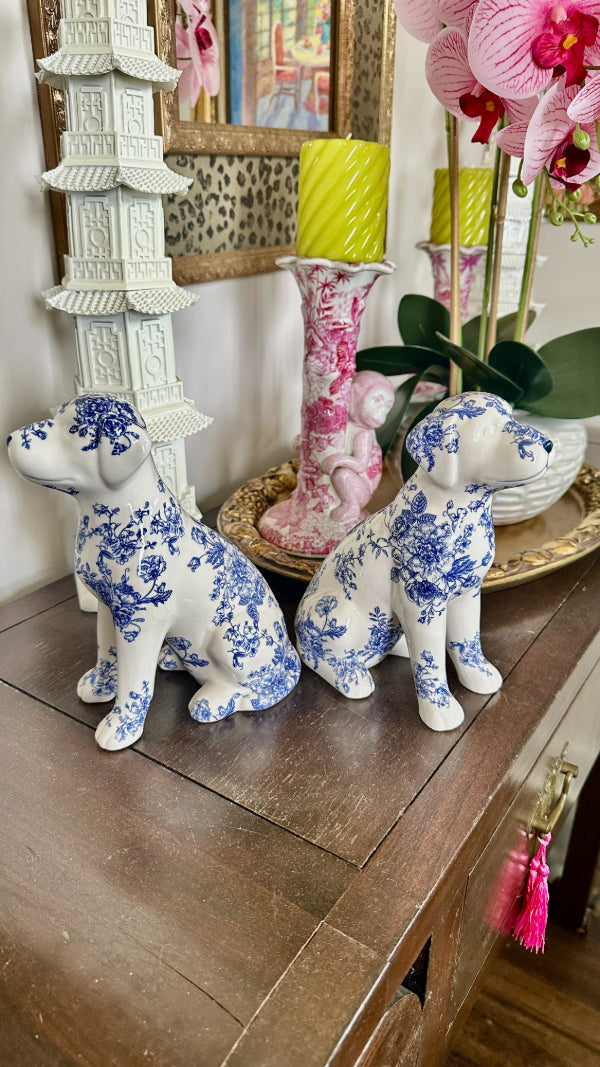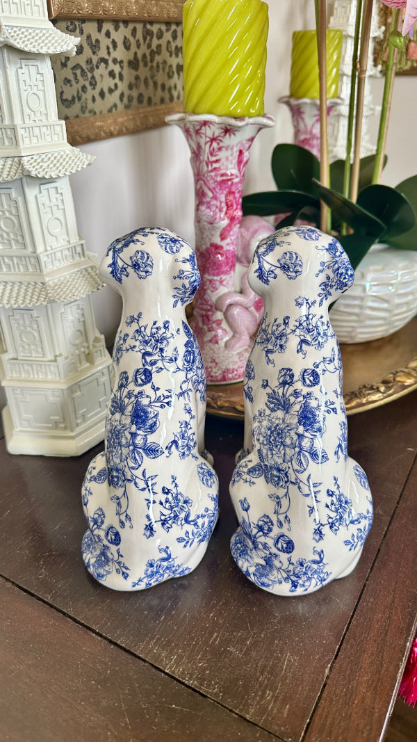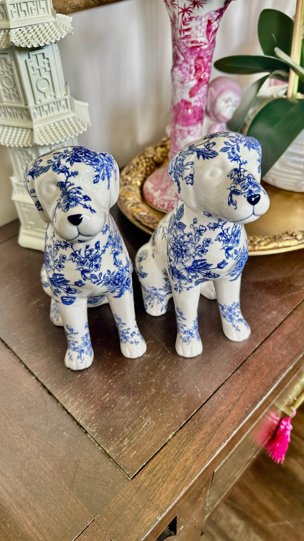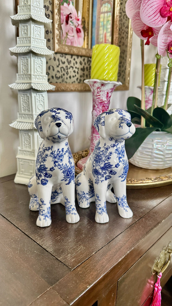 Add charm and elegance to your home with this delightful pair of blue and white dog figurines. Crafted with meticulous attention to detail, these new porcelain figurines feature a classic blue-and-white floral design that complements any décor. Whether placed on a mantel, shelf, or as part of a collection, these figurines bring a refined, yet playful touch to your space. Perfect for dog lovers or anyone seeking a timeless decorative accent.