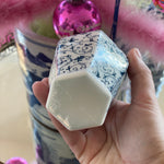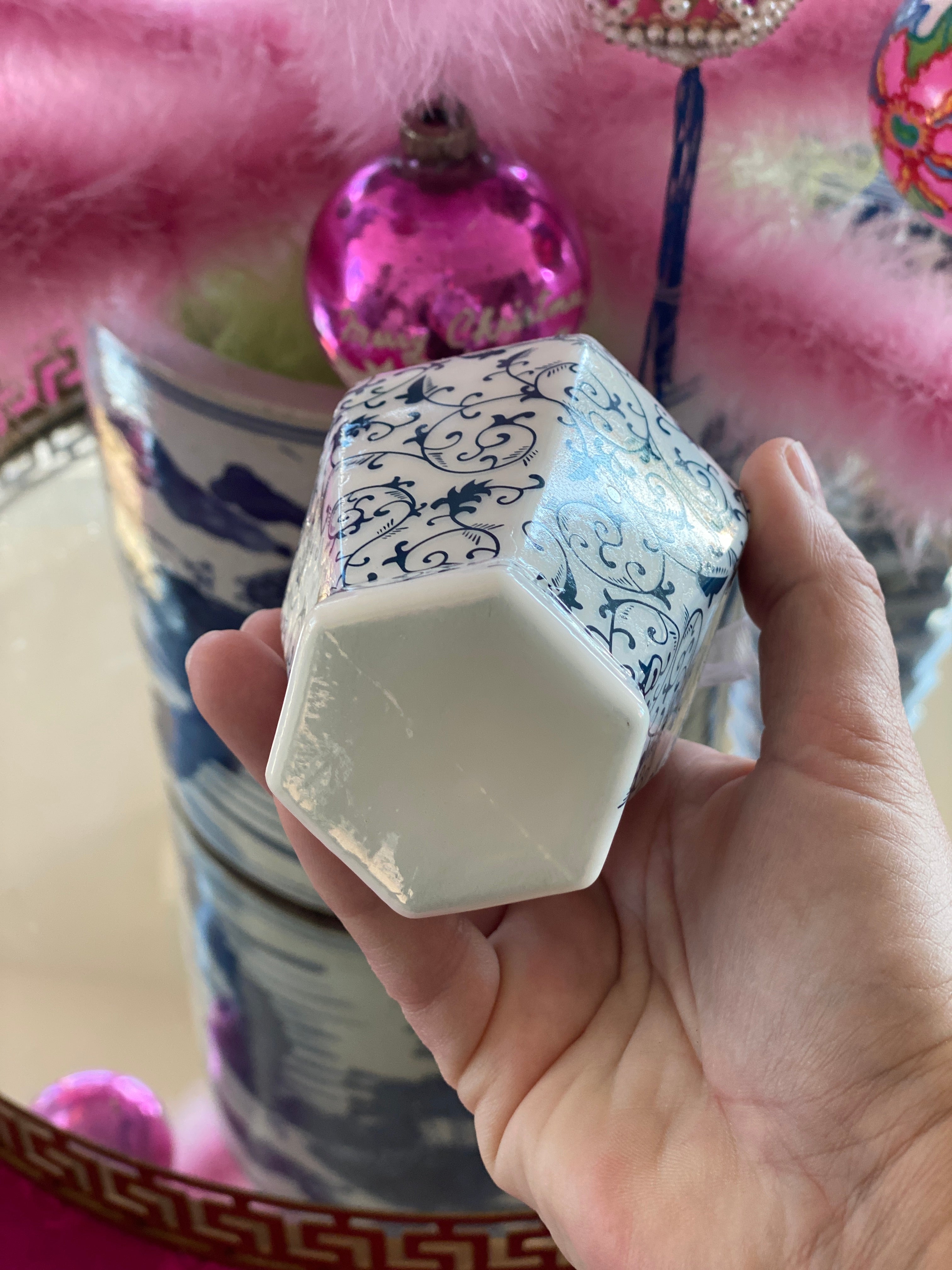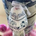 Ginger Jar Glass Christmas Ornament, Blue and White Hexagon