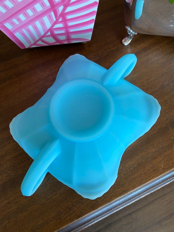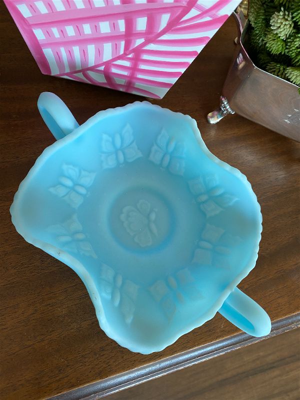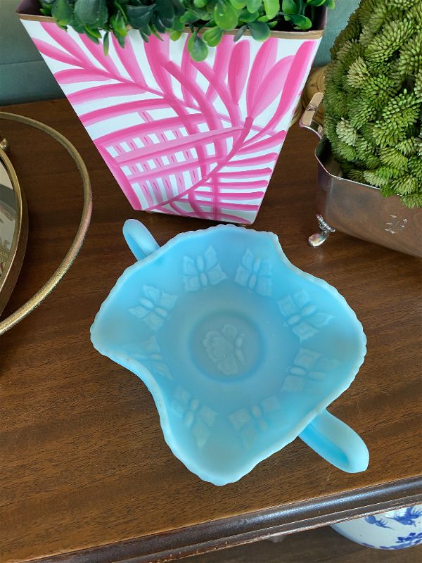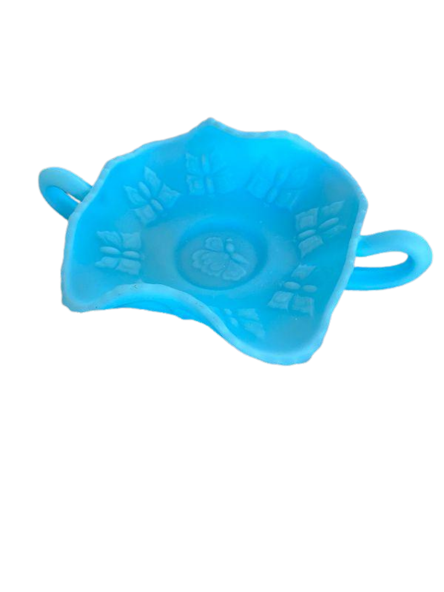 Vintage Blue Fenton Glass Butterfly Handled Bowl