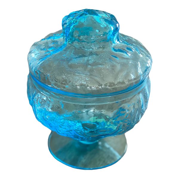 Vintage Candy Jar, Dish, Lidded, Blue Glass