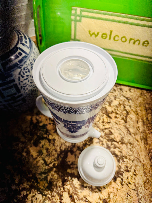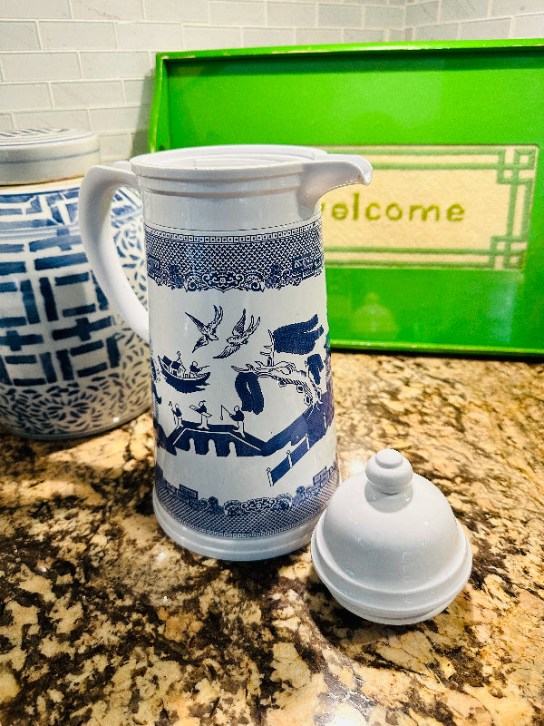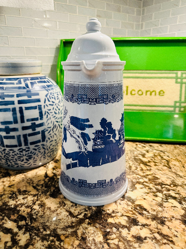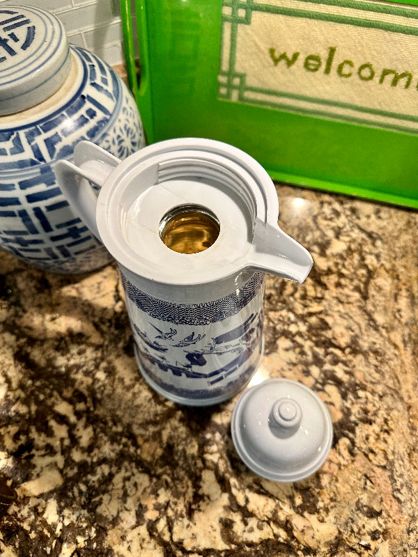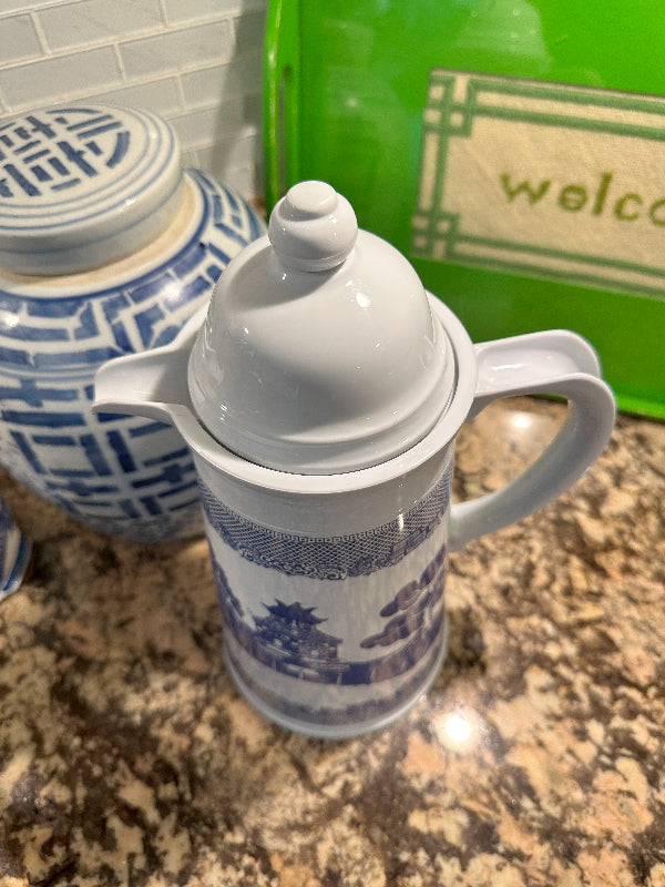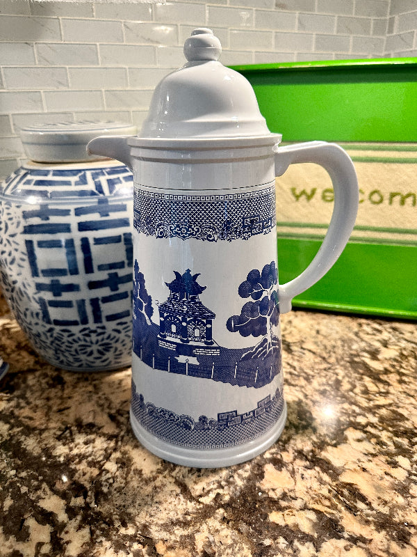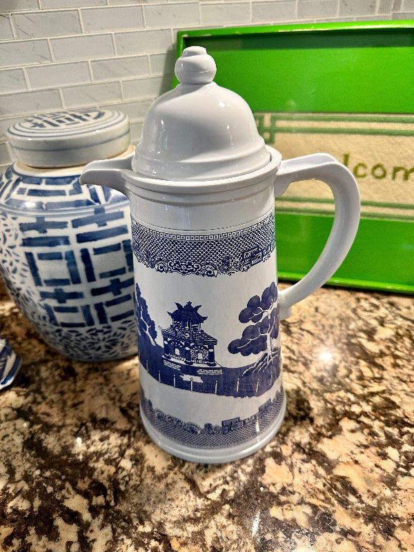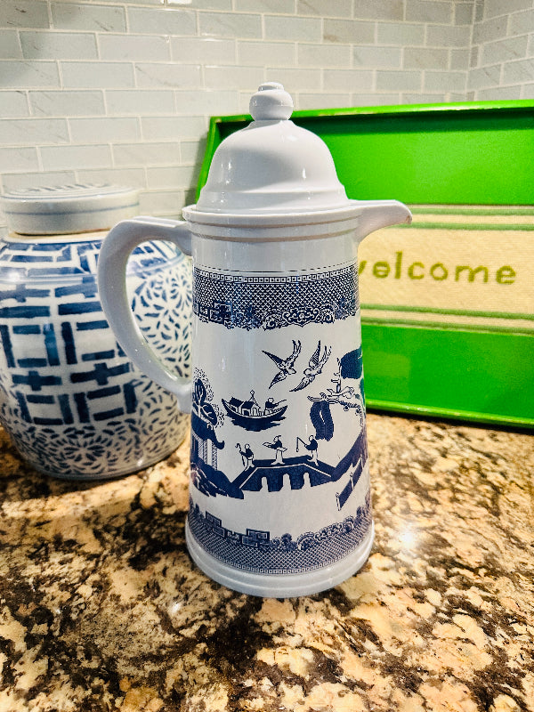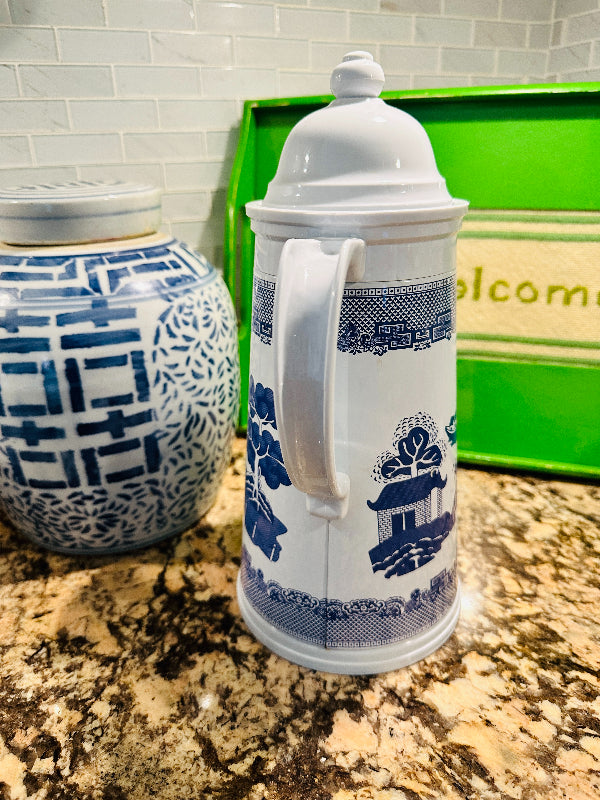Vintage Blue Willow Enamelware Coffee Thermos